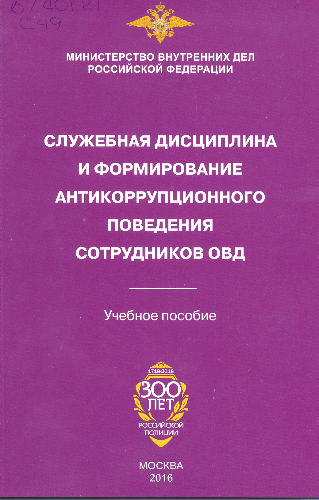Служебная дисциплина и формирование антикоррупционного поведения сотрудников ОВД: учебное пособие