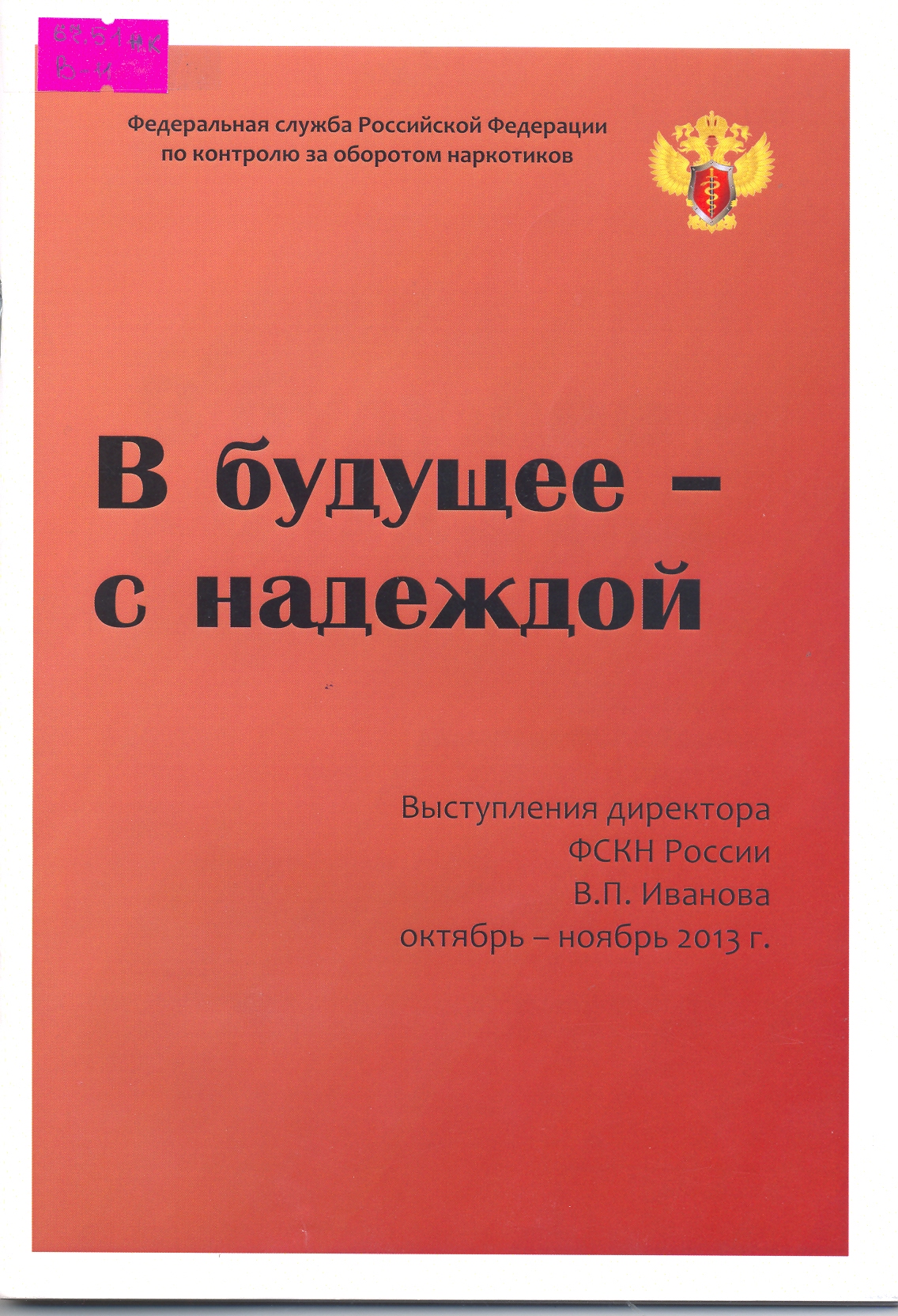 В будущее - с надеждой: выступления директора ФСКН России В.П. Иванова октябрь-ноябрь 2013г.