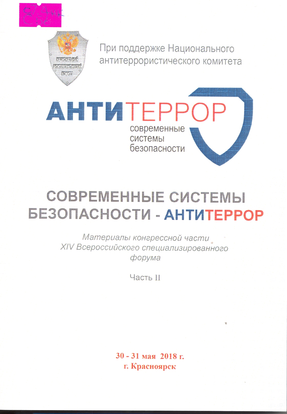 Современные системы безопасности-Антитеррор: материалы конгрессной части XIV Всероссийского специализированного форума (30-31 мая 2018 г.): в 2 ч. Часть 2