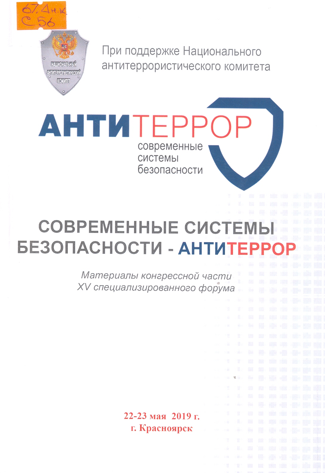 Современные системы безопасности-Антитеррор: материалы конгрессной части XV Всероссийского специализированного форума (22-23 мая 2019г.)