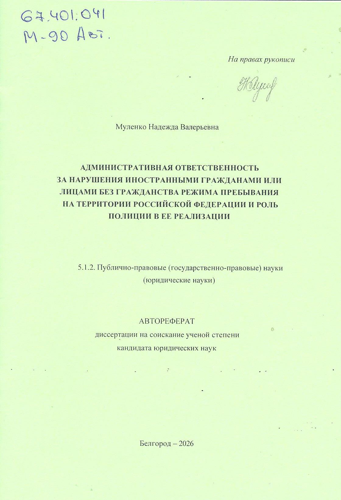 Административно-деликтологическое содержание правонарушений в области обеспечения режима пребыван...: монография