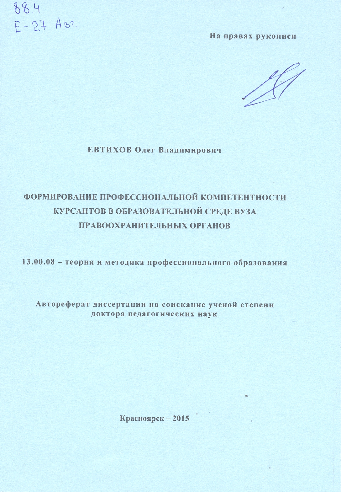 Формирование профессиональной компетентности курсантов в образовательной среде вуза правоохраните...: автореферат: 13.00.08