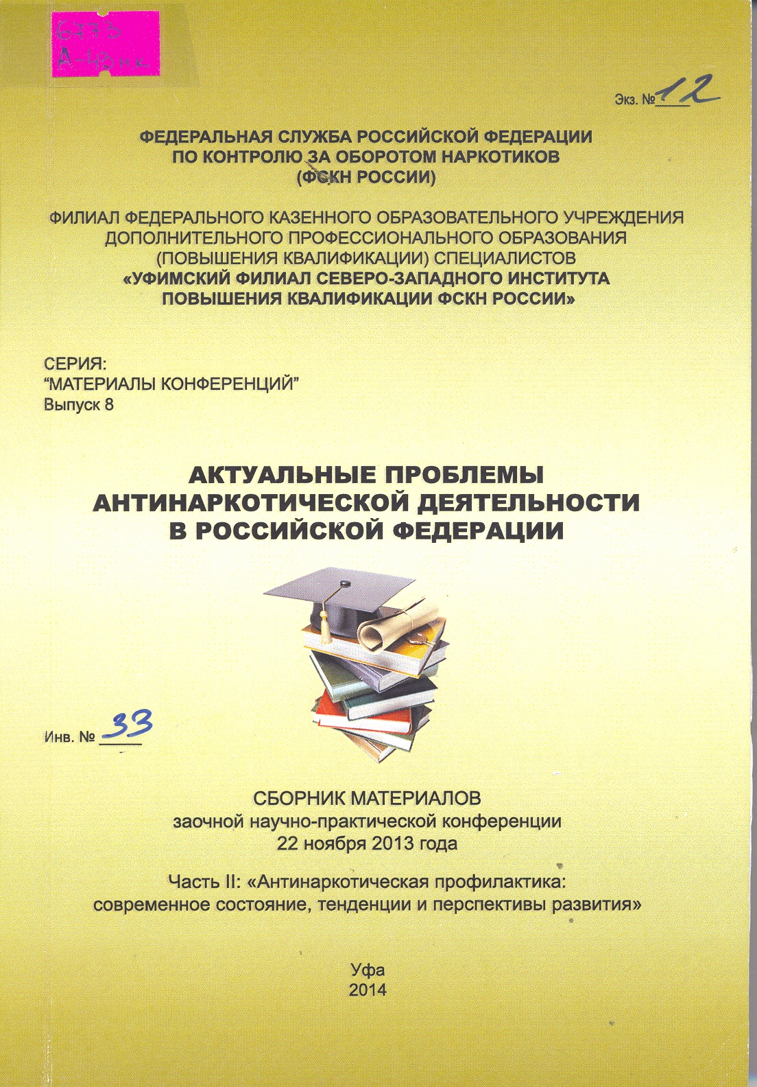 Актуальные проблемы антинаркотической деятельности в Российской Федерации: сборник материалов заочной научно-практической конференции (21 ноября 2014 года, Уфа) : Часть I. Антинаркотическая профила...