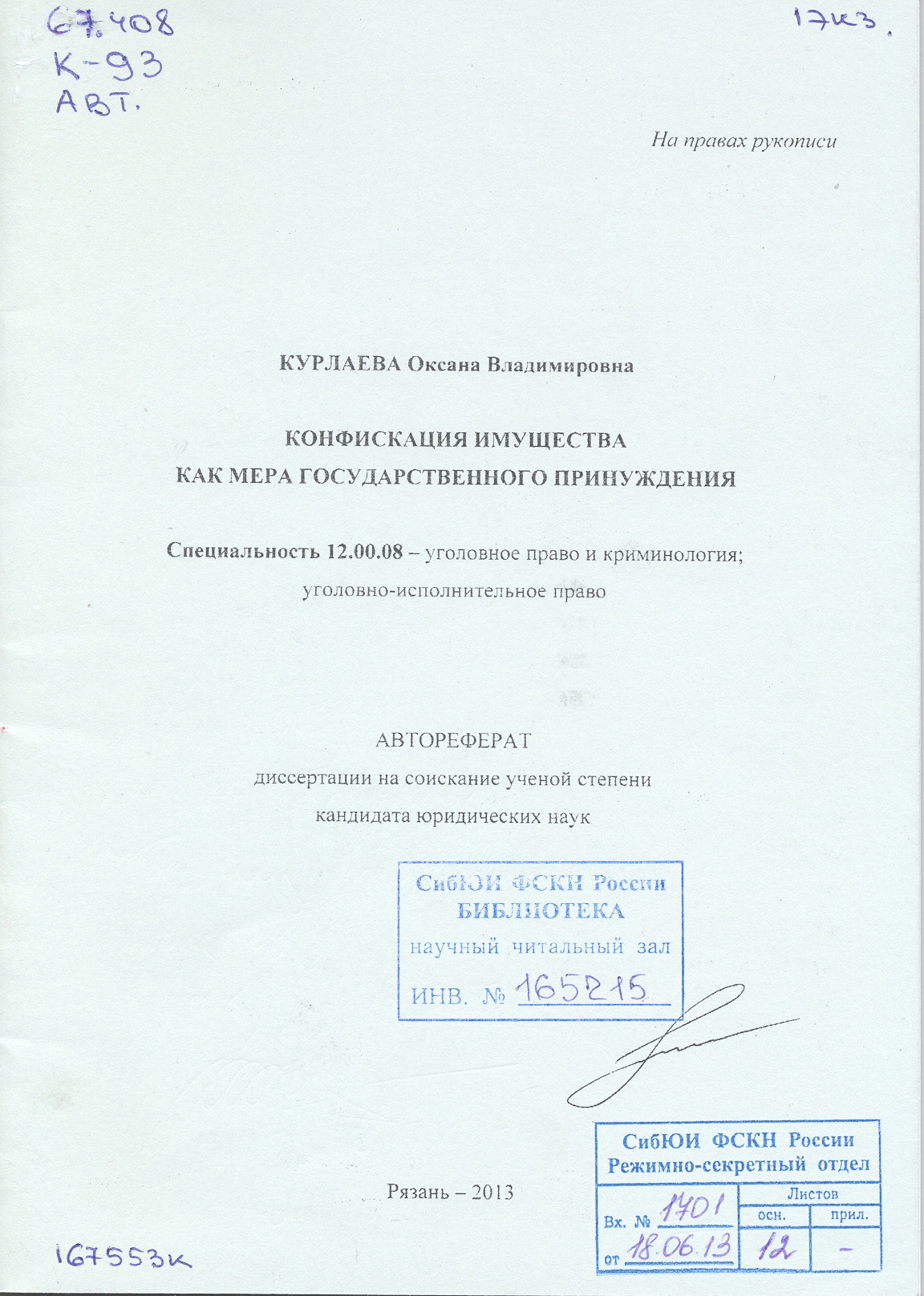 Конфискация имущества как мера государственного принуждения: автореферат: 12.00.08.