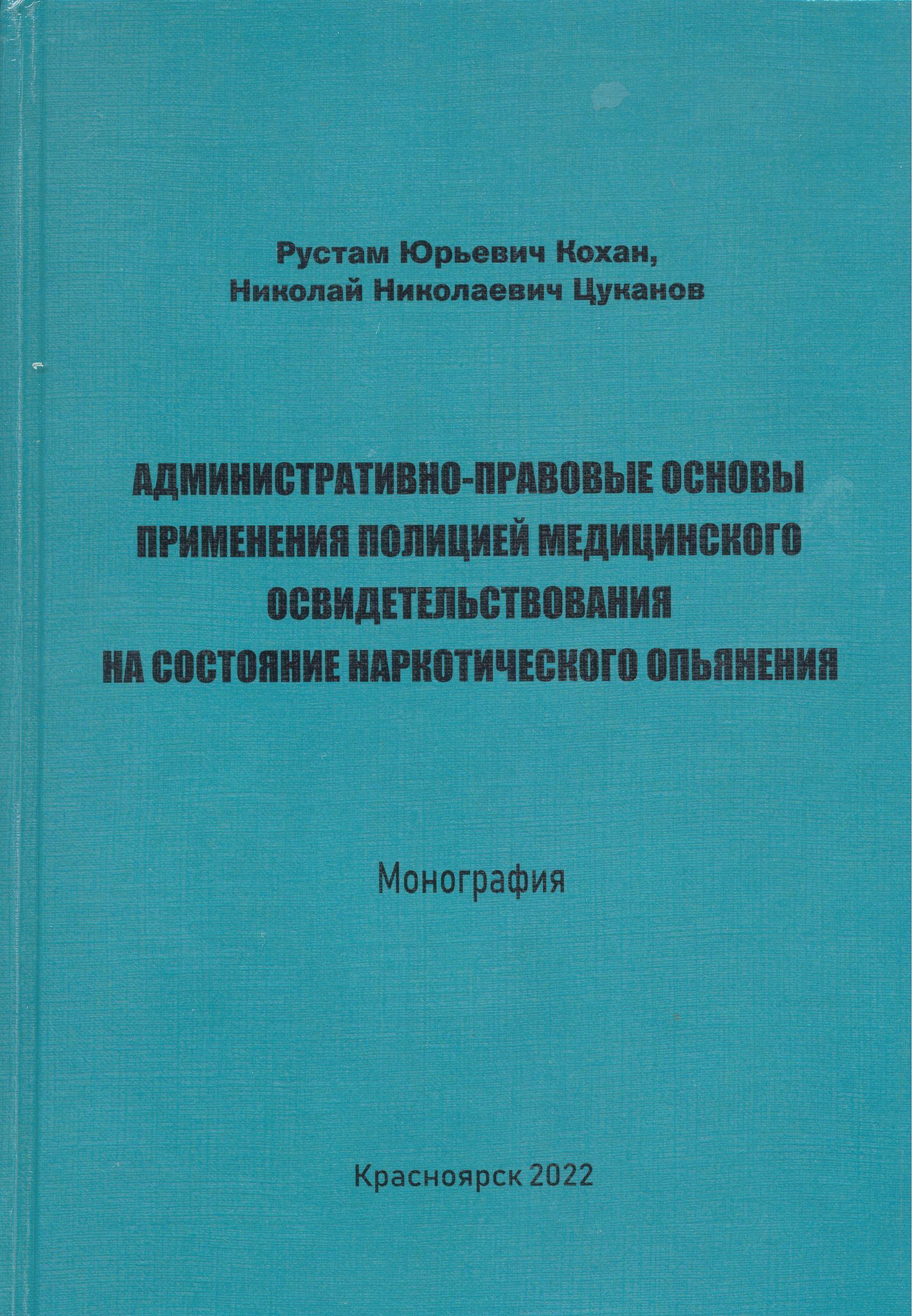Административно-правовые основы применения полицией медицинского освидетельствования на состояние...: монография