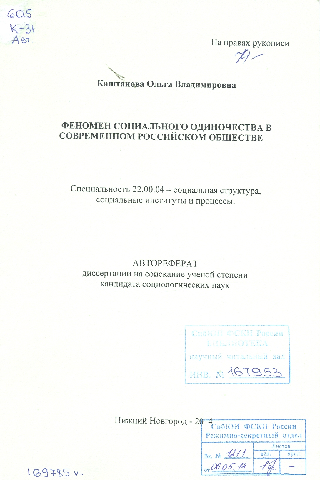 Феномен социального одиночества в современном российском обществе: автореферат: 22.00.04.