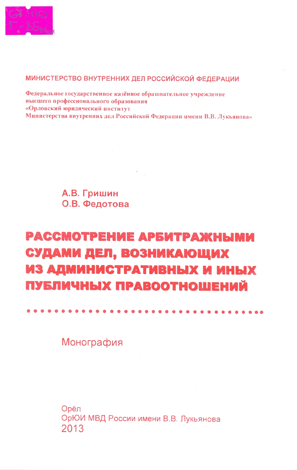 Рассмотрение арбитражными судами дел, возникающих из административных и иных публичных правоотнош...: монография
