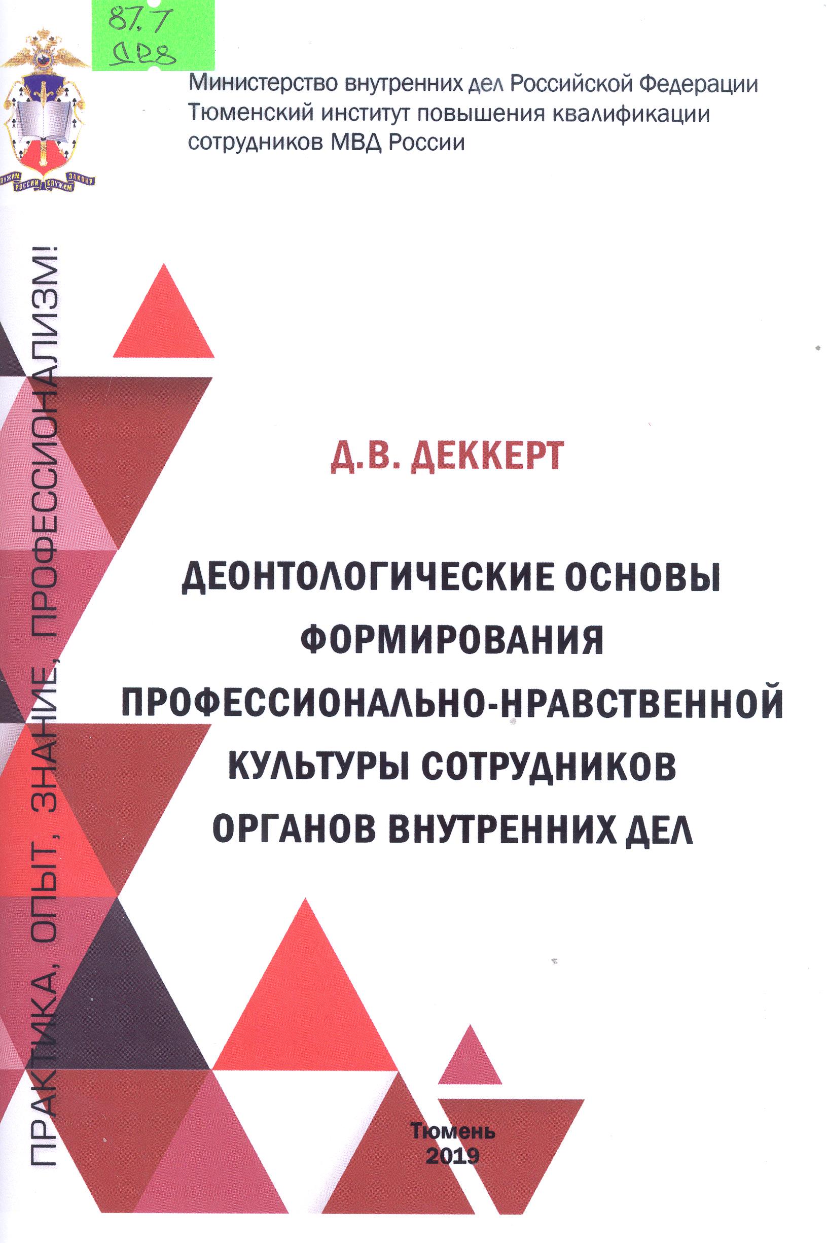 Деонтологические основы формирования профессионально-нравственной культуры сотрудников органов в...: учебно-методическое пособие