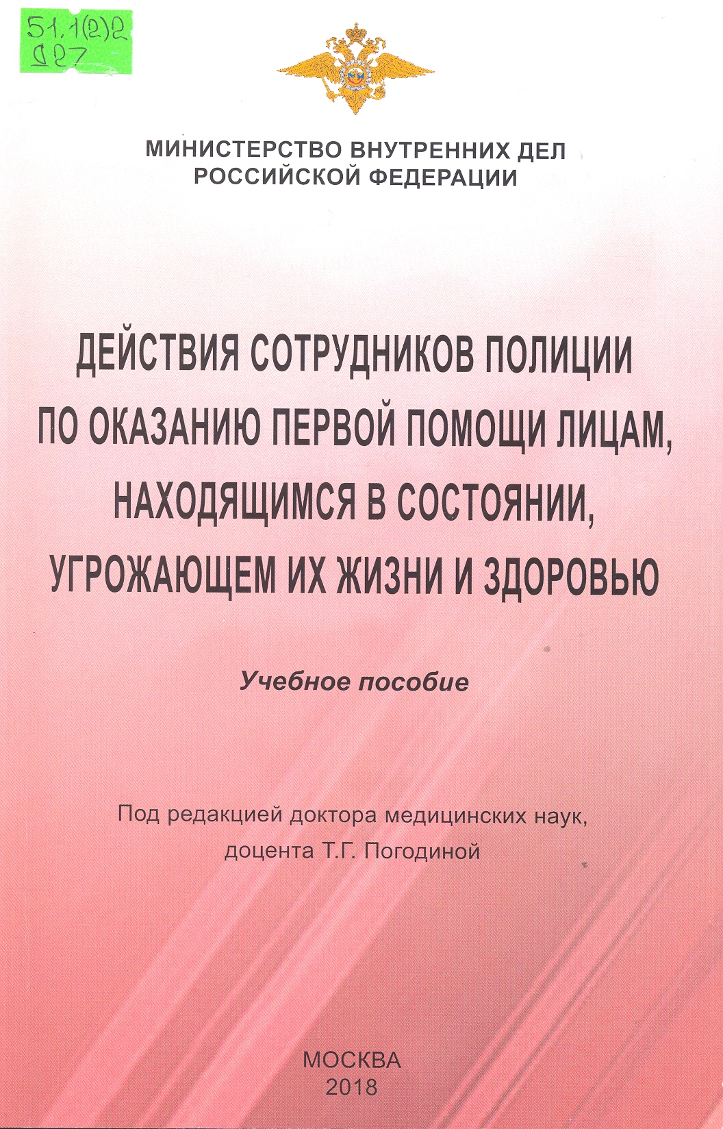 Действия сотрудников полиции по оказанию первой помощи лицам, находящимся в состоянии, угрожающем...: учебное пособие