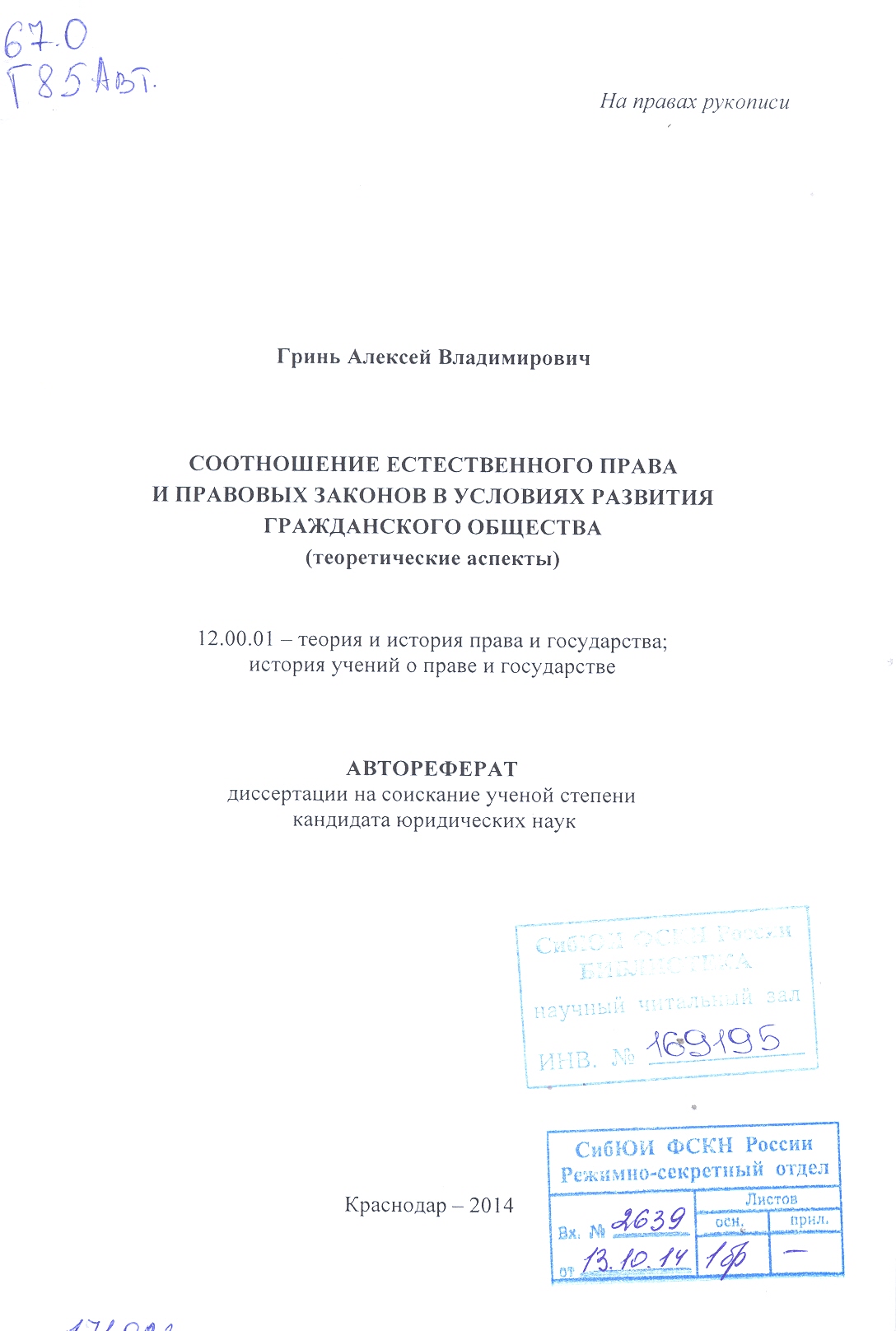 Соотношение естественного права и правовых законов в условиях развития гражданского общества (тео...: автореферат: 12.00.01