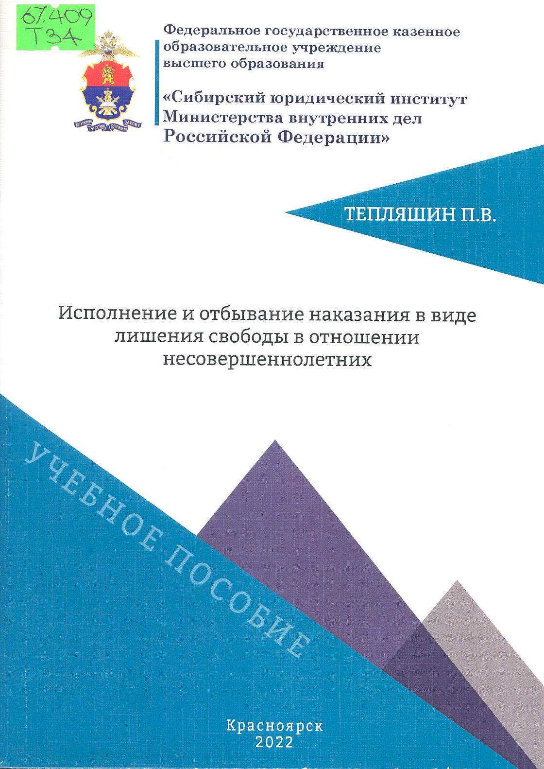 Исполнение и отбывание наказания в виде лишения свободы в отношении несовершеннолетних: учебное пособие