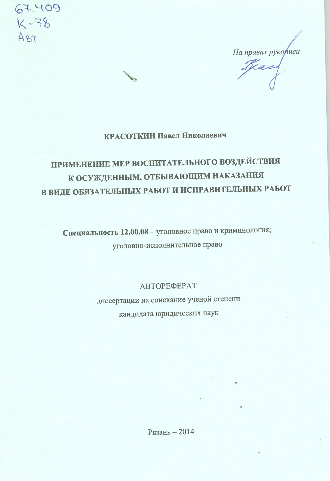 Применение мер воспитательного воздействия к осужденным, отбывающим наказания в виде обязательных...: автореферат: 12.00.08
