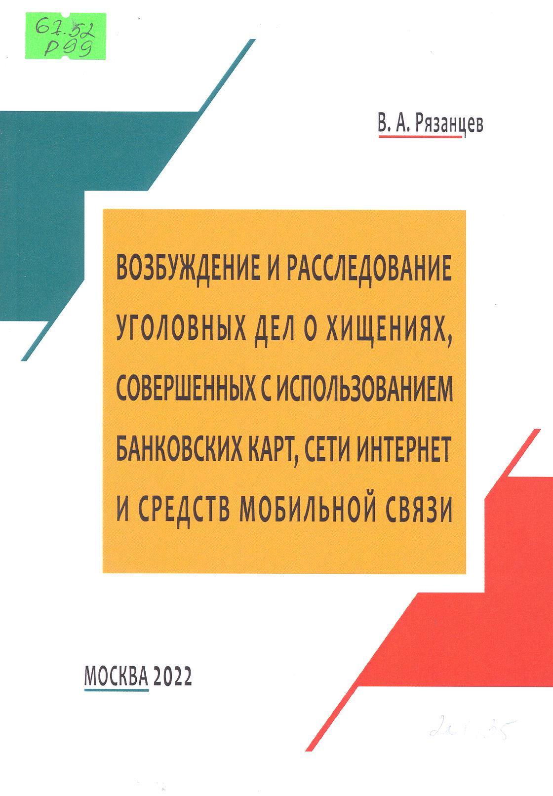 Возбуждение и расследование уголовных дел о хищениях, совершенных с использованием банковских кар...: практическое пособие
