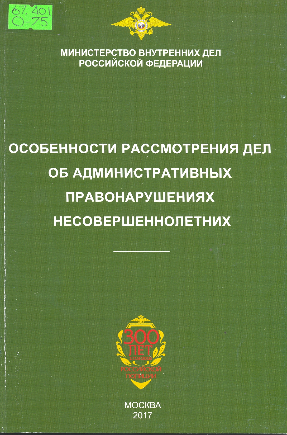 Особенности рассмотрения дел об административных правонарушениях несовершеннолетних: учебное пособие