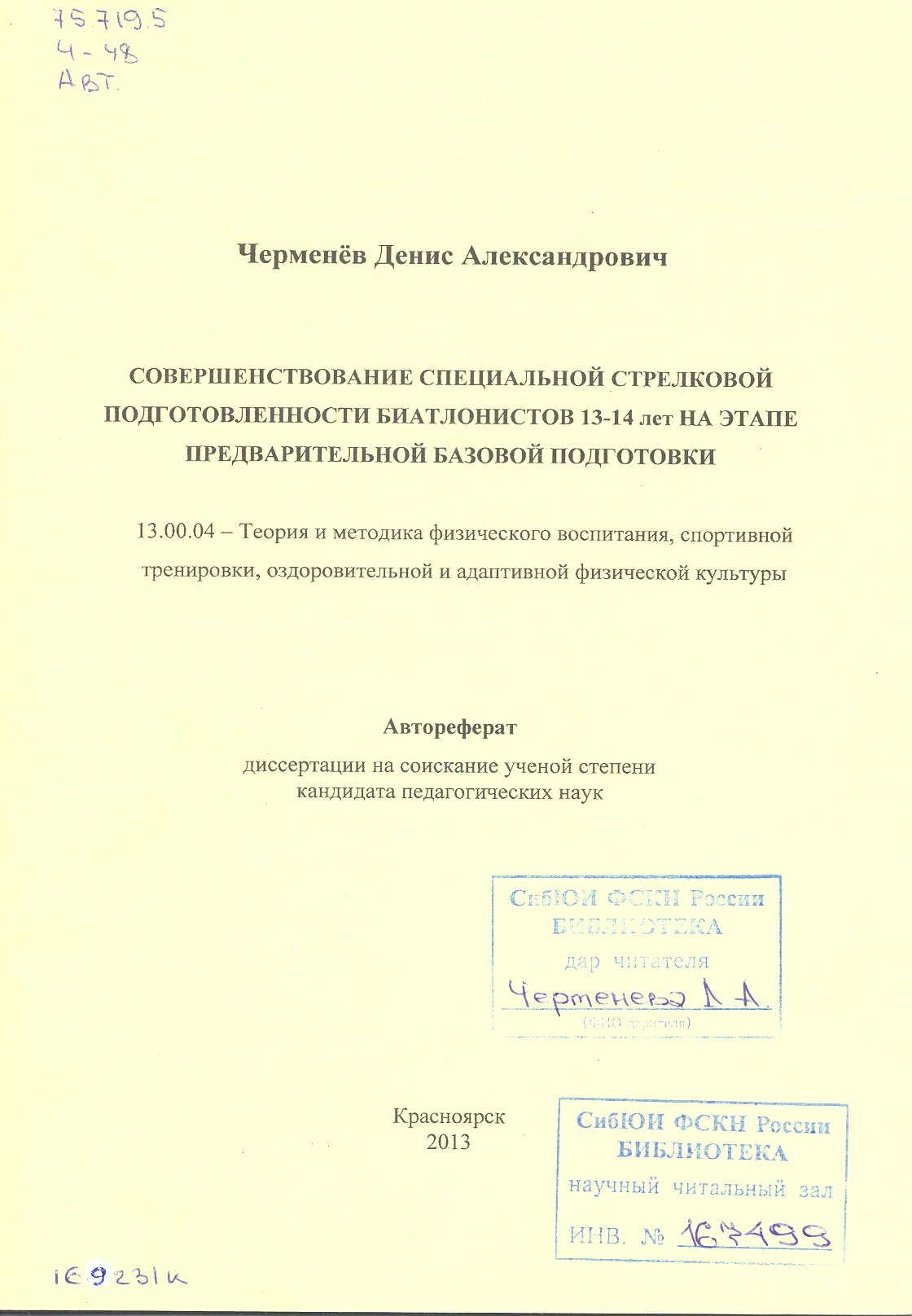 Подготовка олимпийского резерва по биатлону в Красноярском крае (программа для детско-юношеских с...: отчет о научно-исследовательской работе (заключительный)
