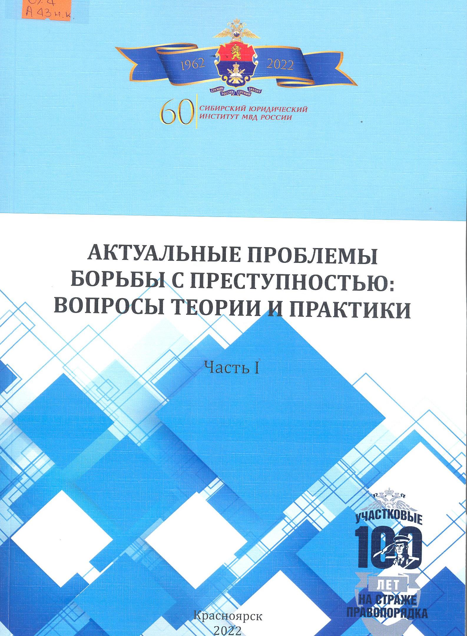 Актуальные проблемы борьбы с преступностью: вопросы теории и практики: материалы XХVI международной научно-практической конференции (20-21 апреля 2023 г.) : в 2 ч. Ч. 1