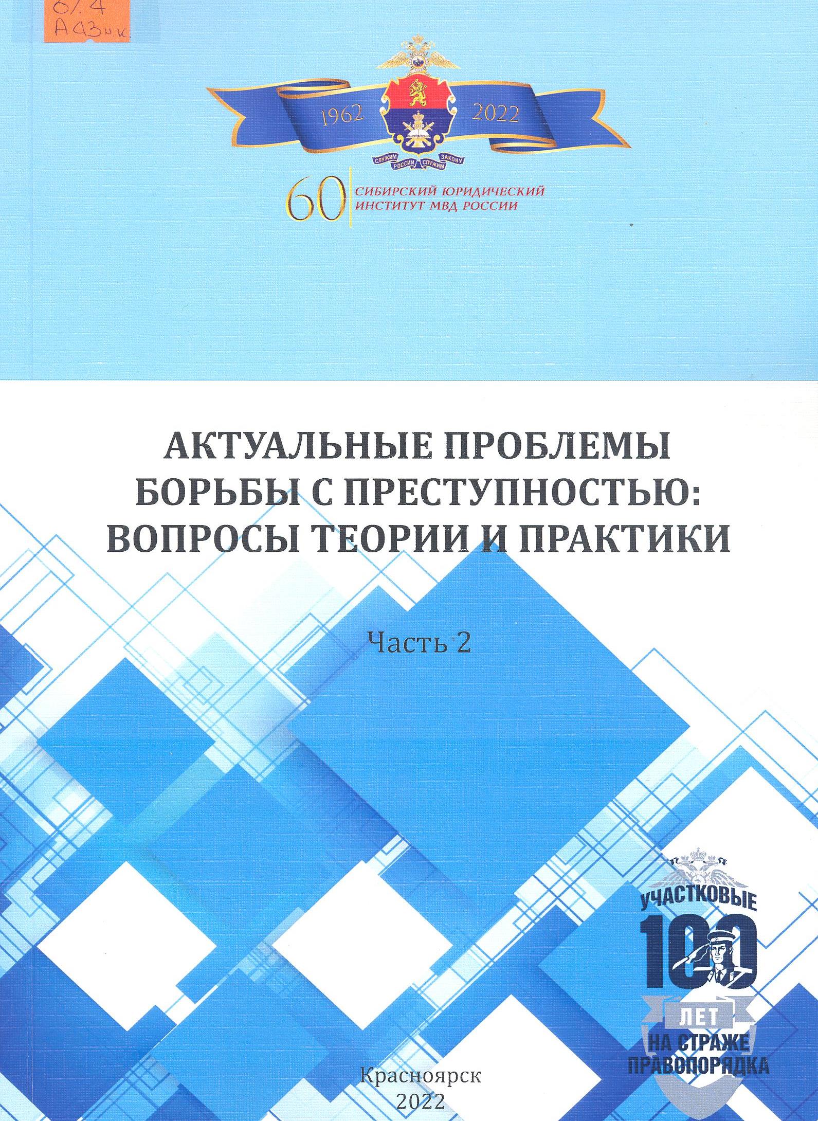 Актуальные проблемы борьбы с преступностью: вопросы теории и практики: материалы XХVI международной научно-практической конференции (20-21 апреля 2023 г.) : в 2 ч. Ч. 2