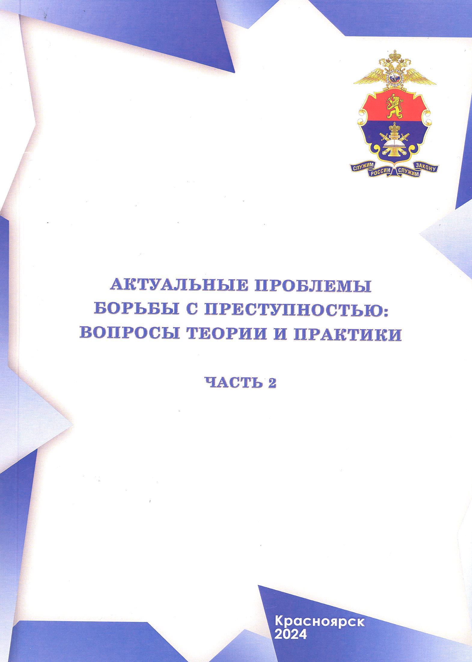 Актуальные проблемы борьбы с преступностью: вопросы теории и практики: материалы XХVI международной научно-практической конференции (4-5 апреля 2024 г.) : в 2 ч. Ч.2