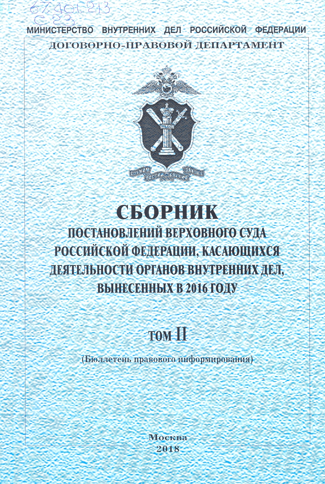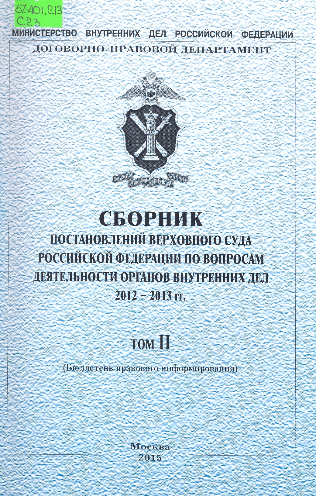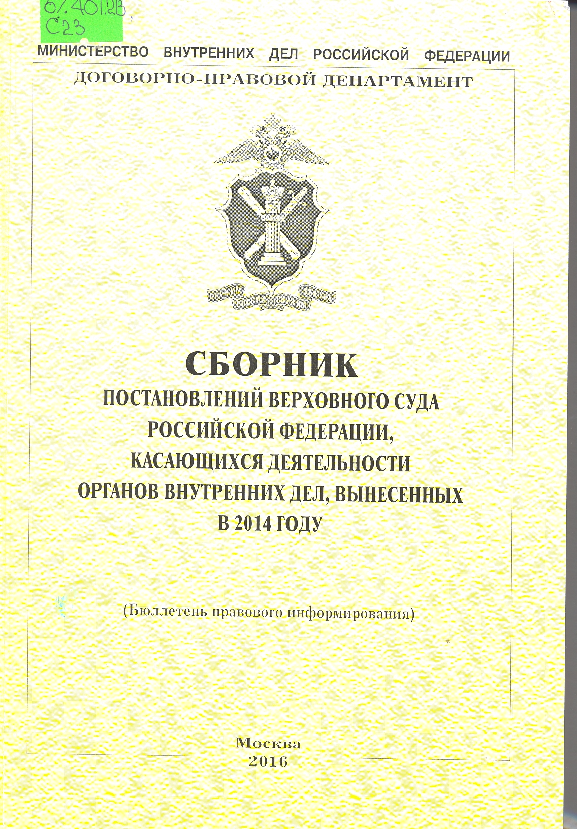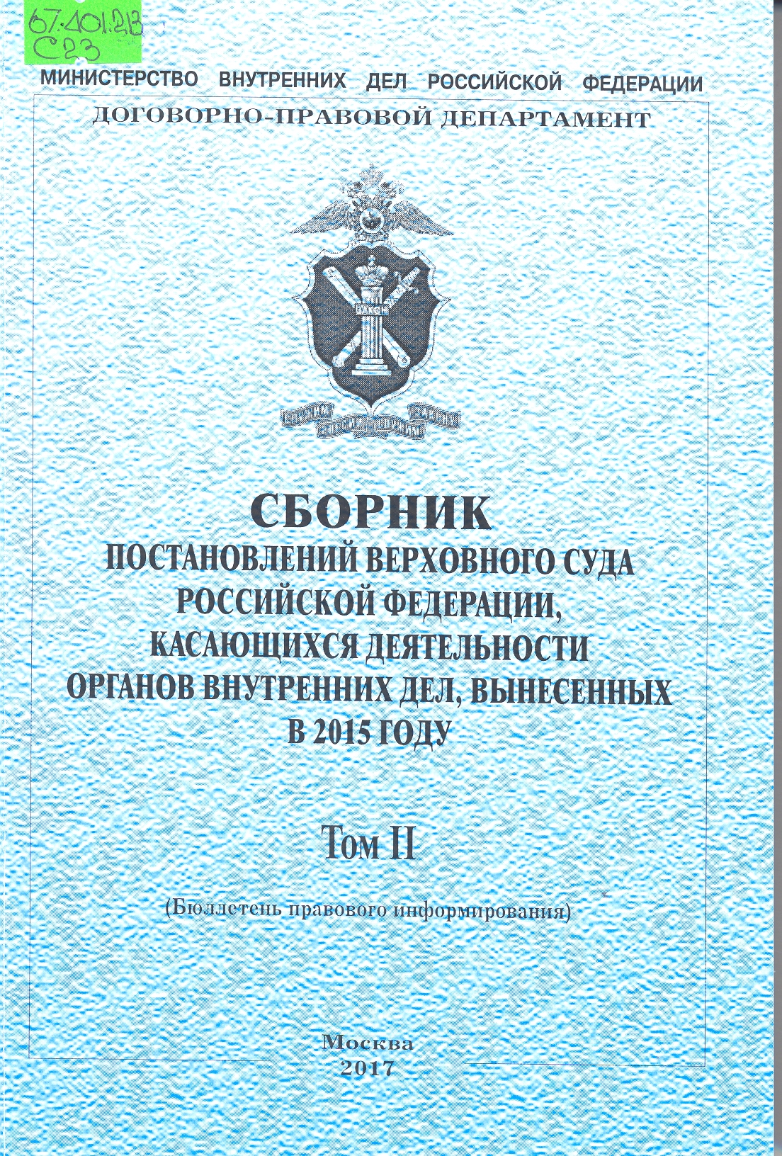 Сборник постановлений Верховного Суда Российской Федерации по вопросам деятельности органов внутр...: бюллетень правового информирования : Том II
