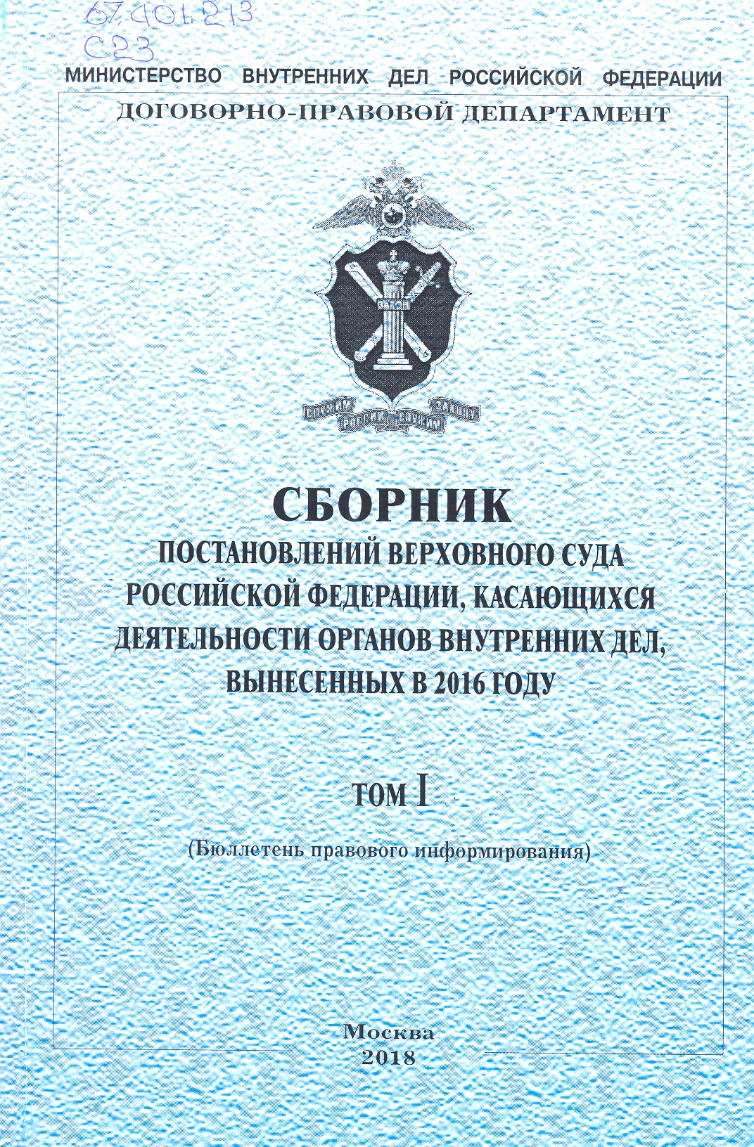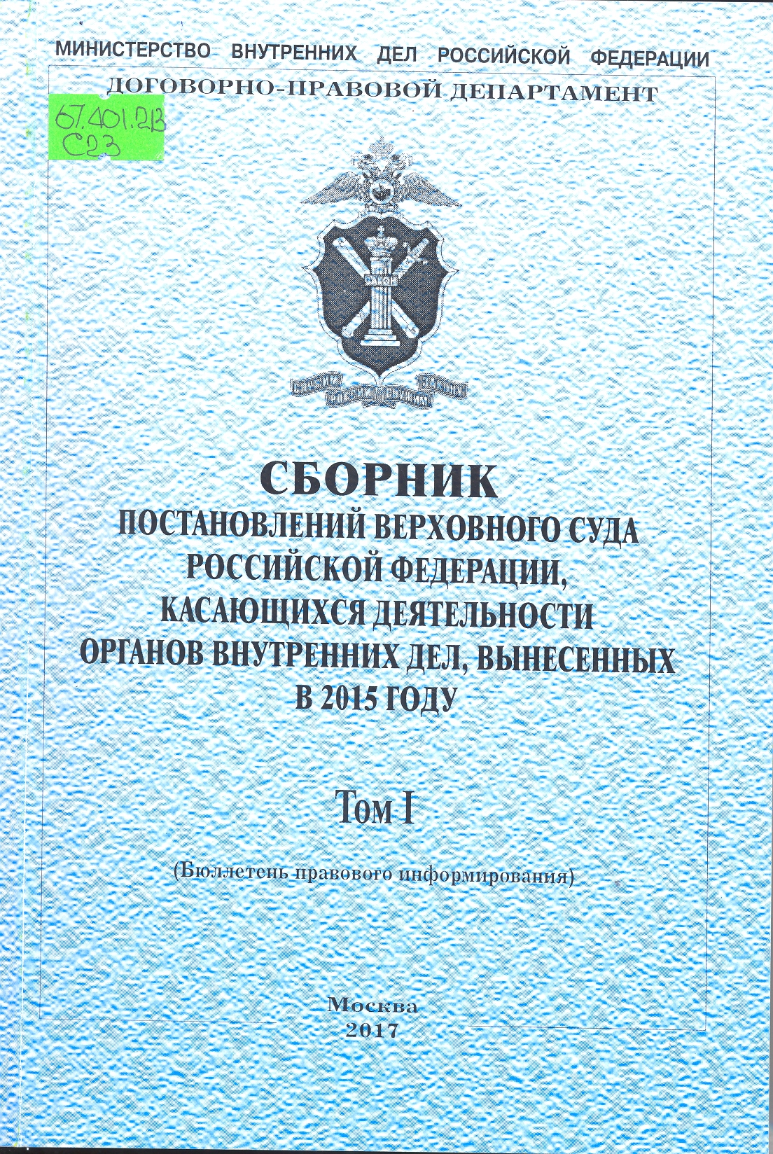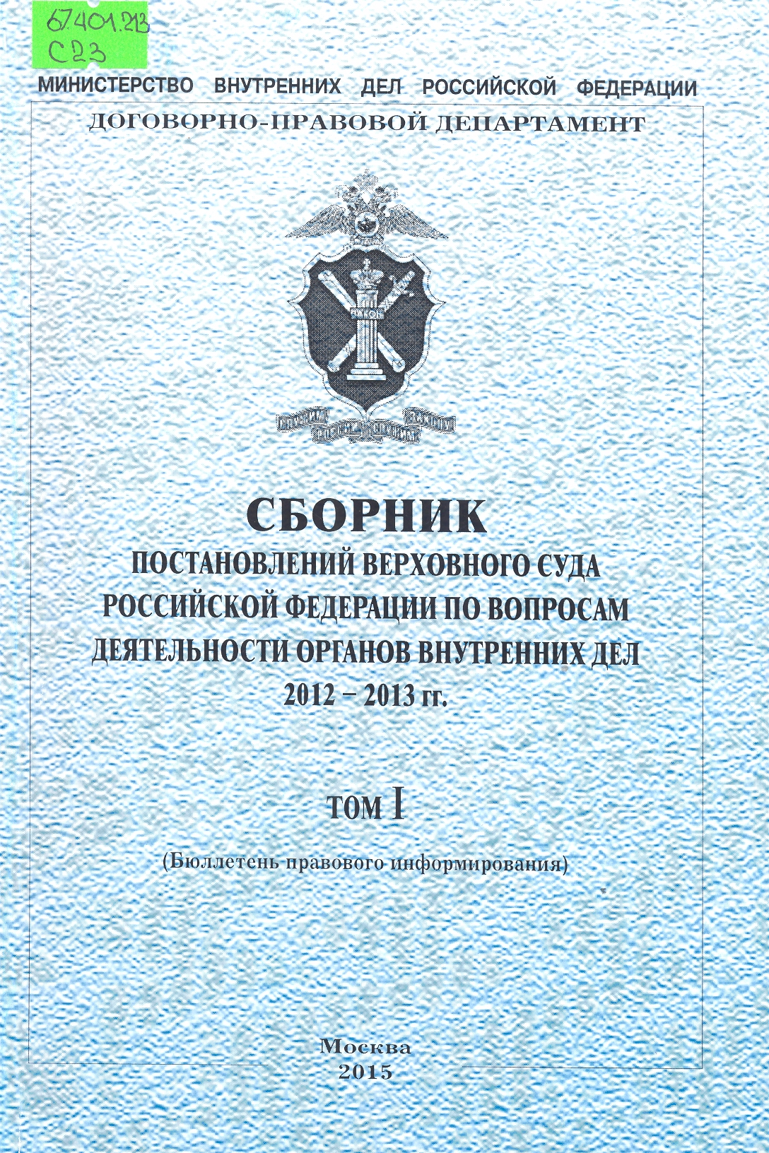 Сборник постановлений Верховного Суда Российской Федерации по вопросам деятельности органов внутр...: бюллетень правового информирования : Том I