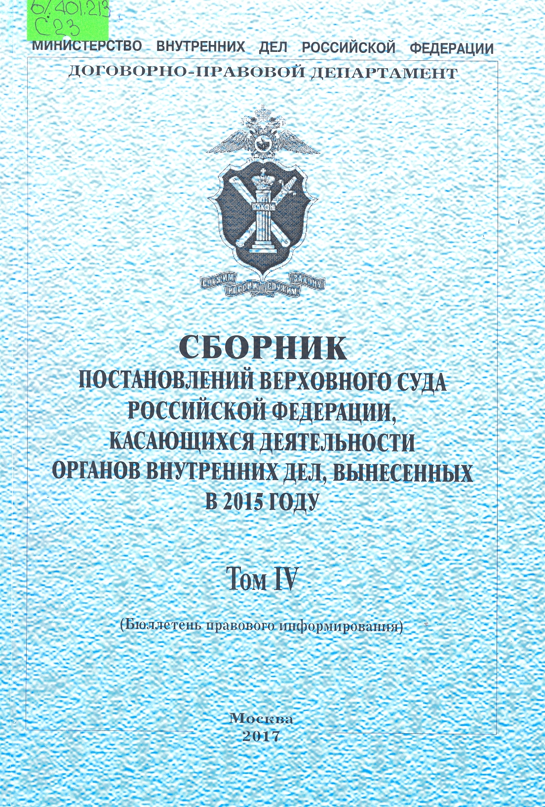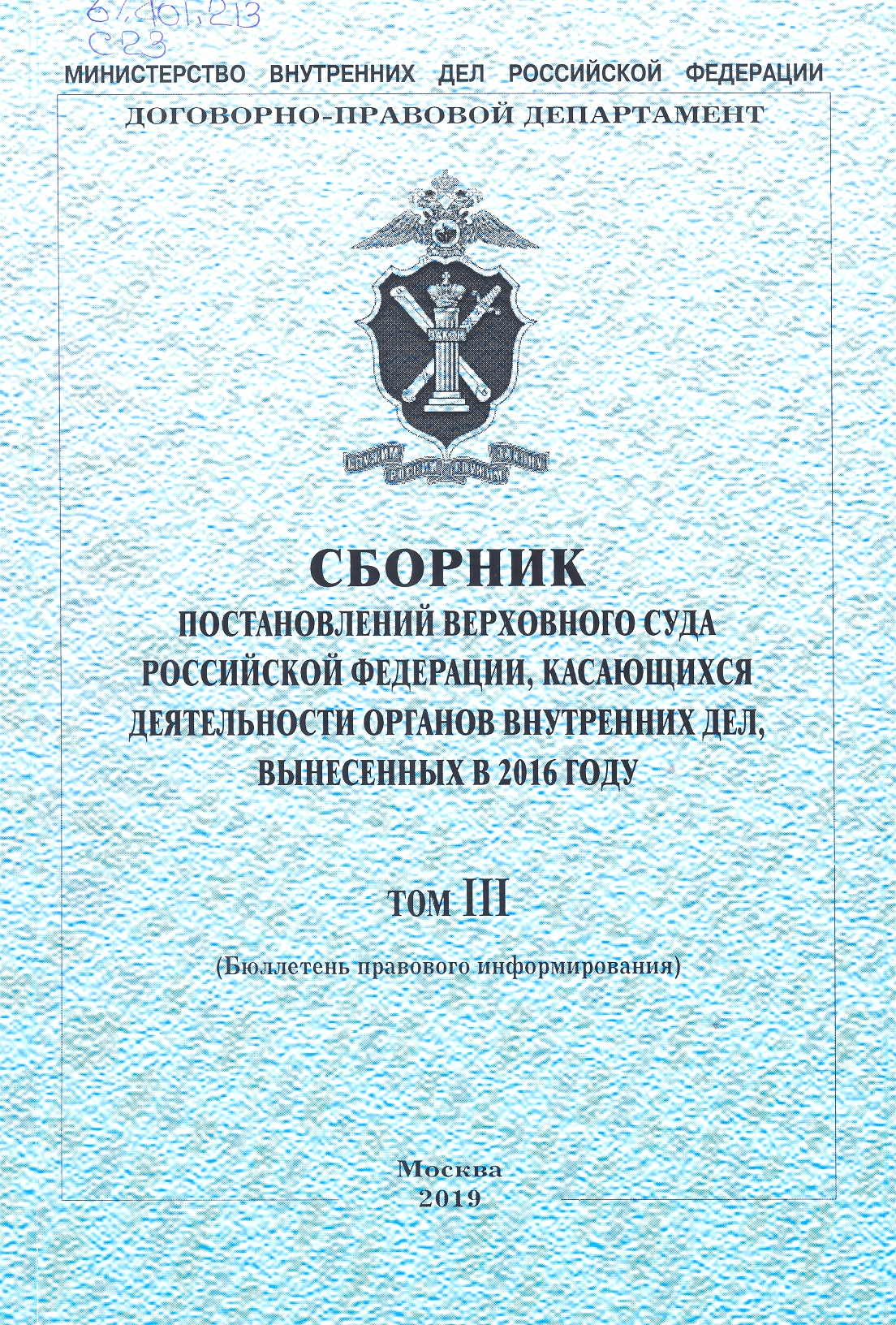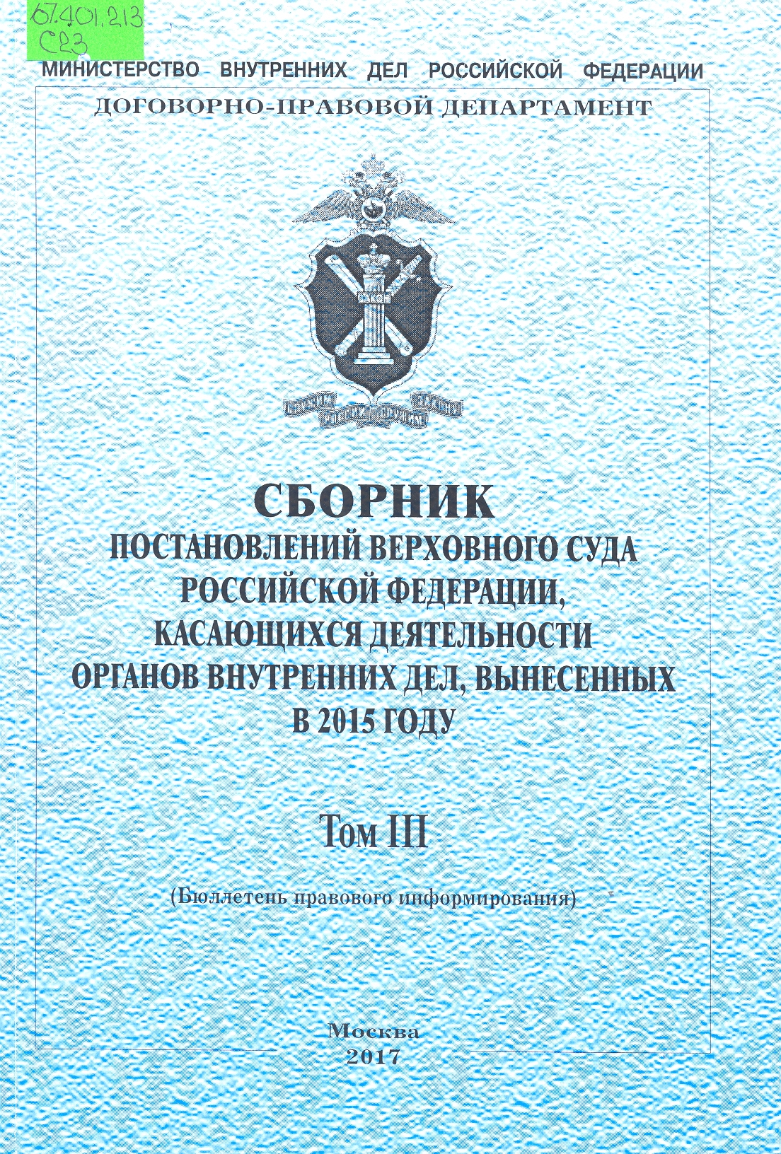 Сборник постановлений Верховного Суда Российской Федерации по вопросам деятельности органов внутр...: бюллетень правового информирования : Том I