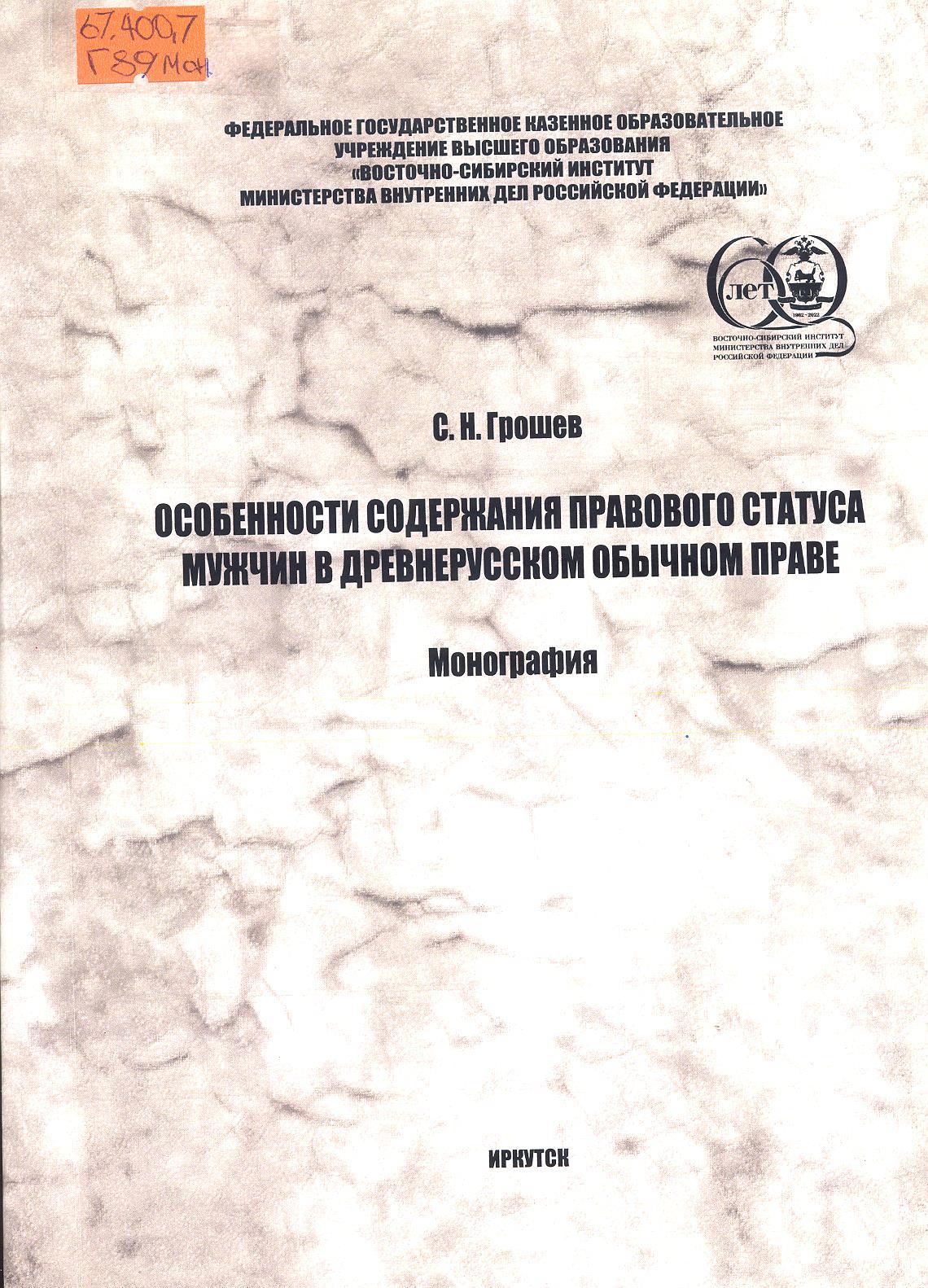 Особенности содержания правового статуса мужчин в древнерусском обычном праве: монография