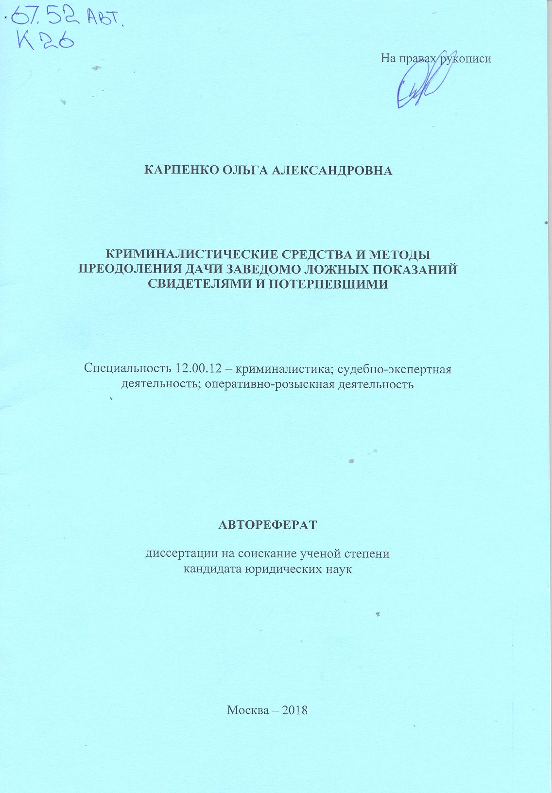 Криминалистические средства и методы преодоления дачи заведомо ложных показаний свидетелями и пот...: автореферат : 12.00.12
