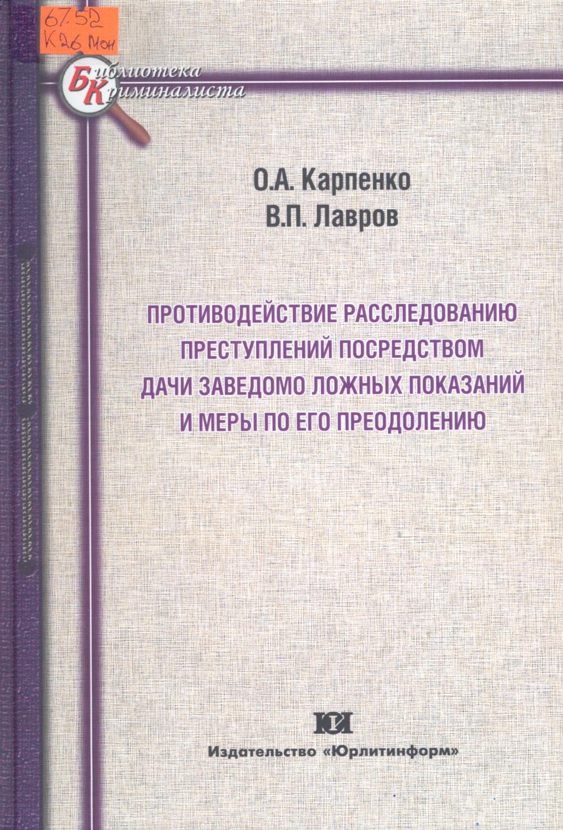 Противодействие расследованию преступлений посредством дачи заведомо ложных показаний и меры по е...: монография