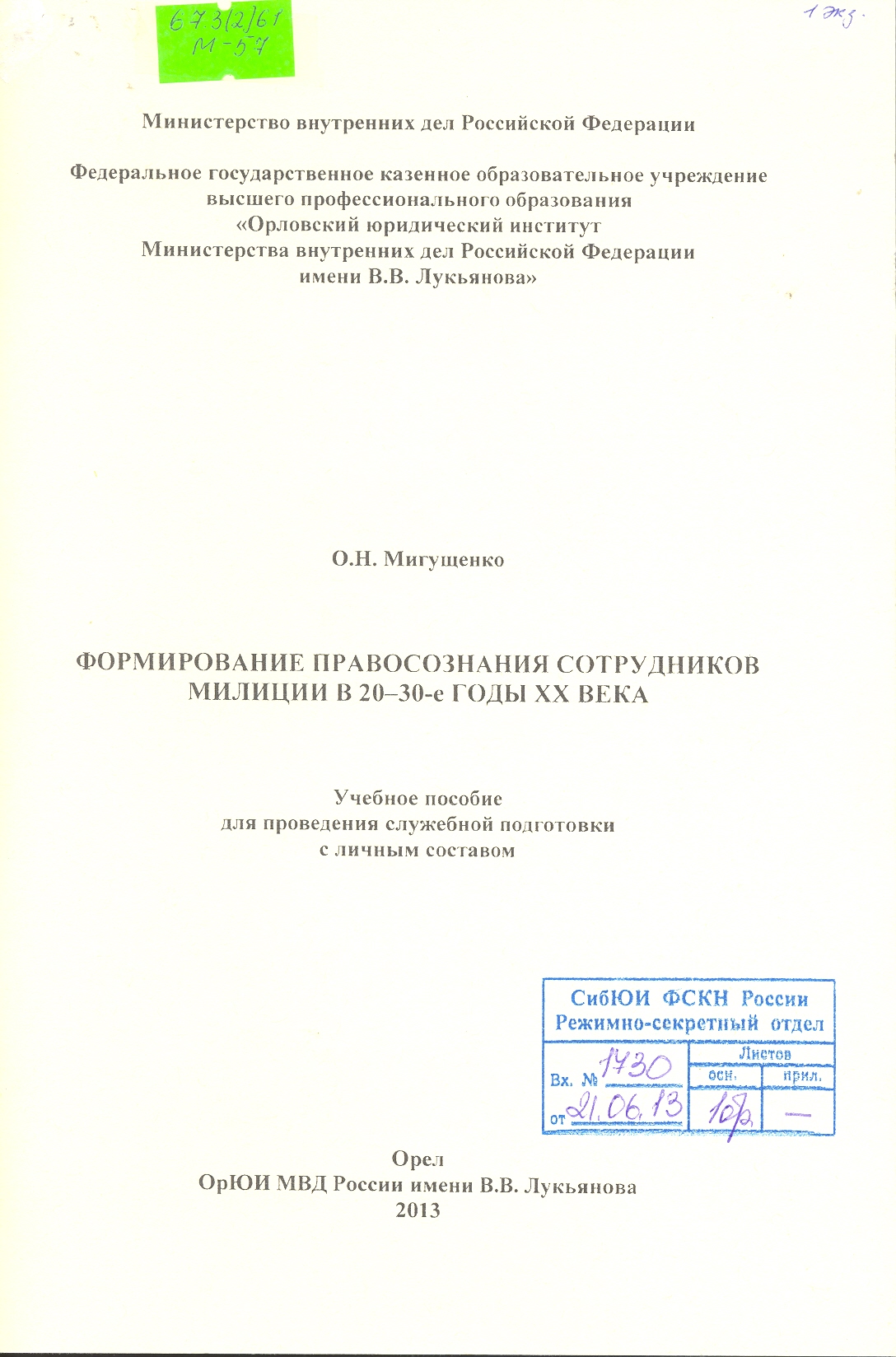 Орловский юридический институт МВД России (ОрЮИ МВД России), 2013 г.