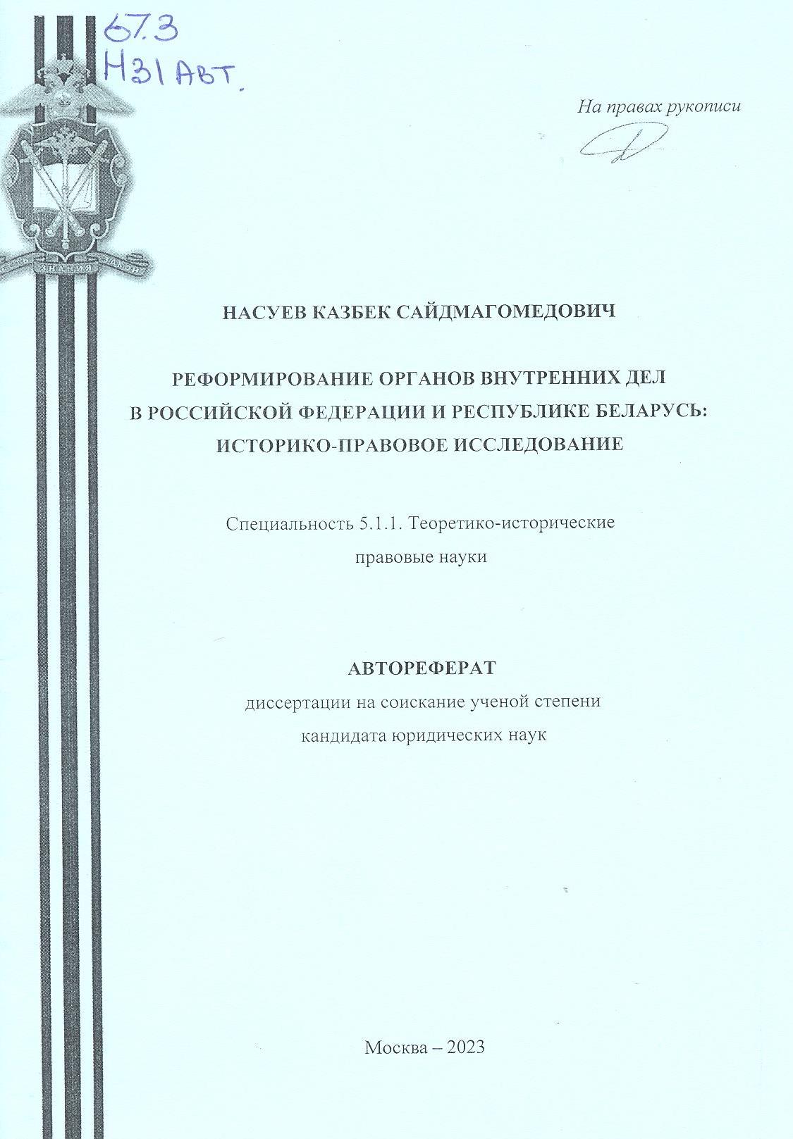 Реформирование органов внутренних дел в Российской Федерации и Республике Беларусь: историко-прав...: автореферат диссертации на соискание ученой степени кандидата юридических наук