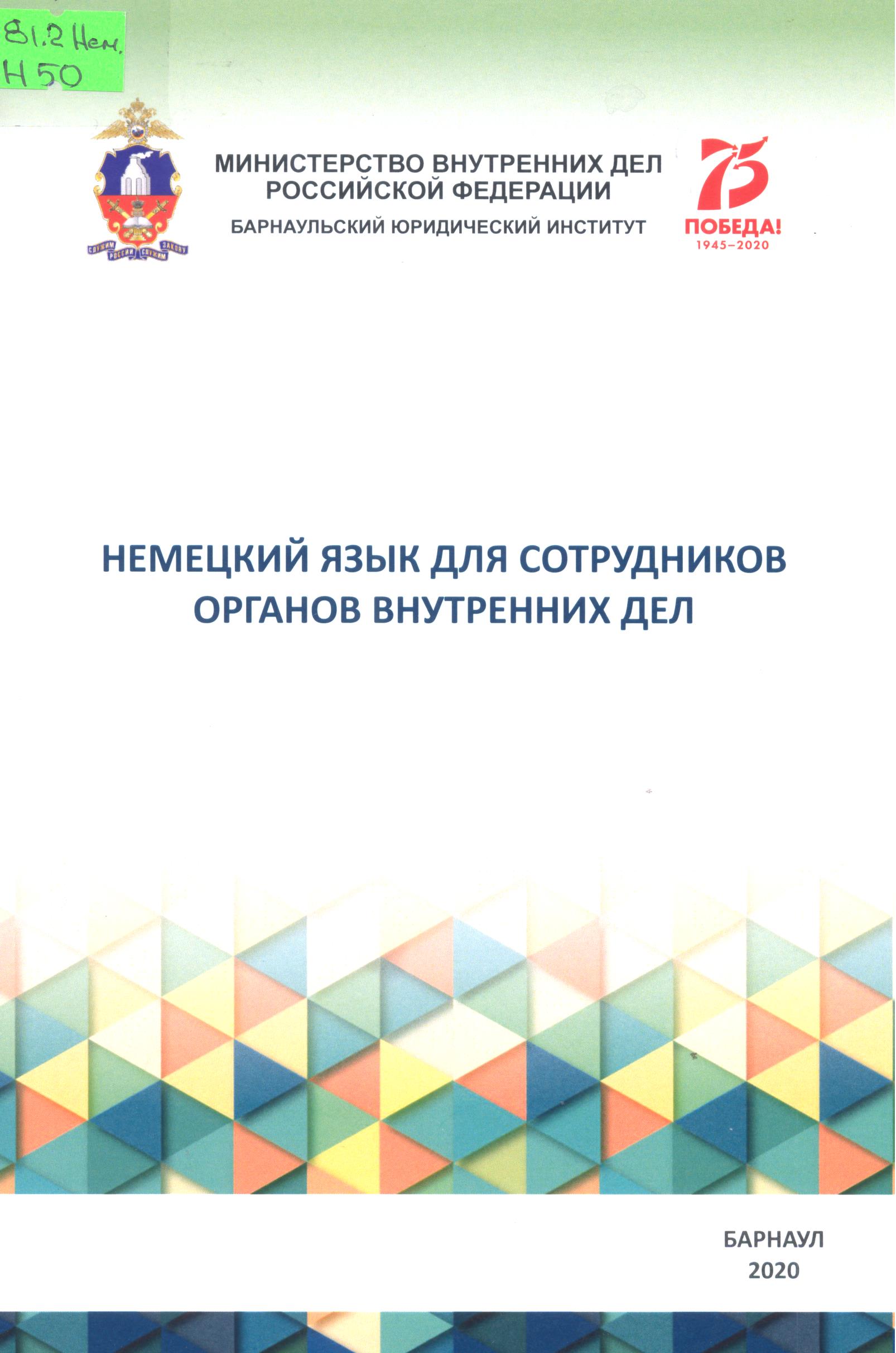 Немецкий язык для сотрудников органов внутренних дел : учебно-методическое пособие