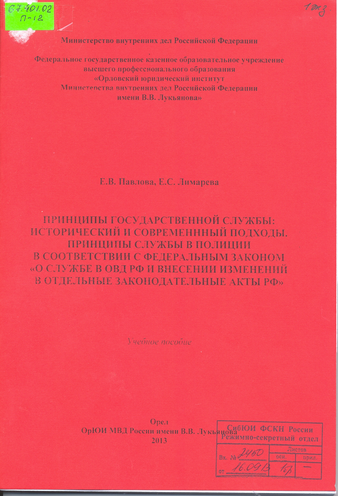 Принципы государственной службы: исторические и современные подходы. Принципы службы в полиции в ...: учебное пособие