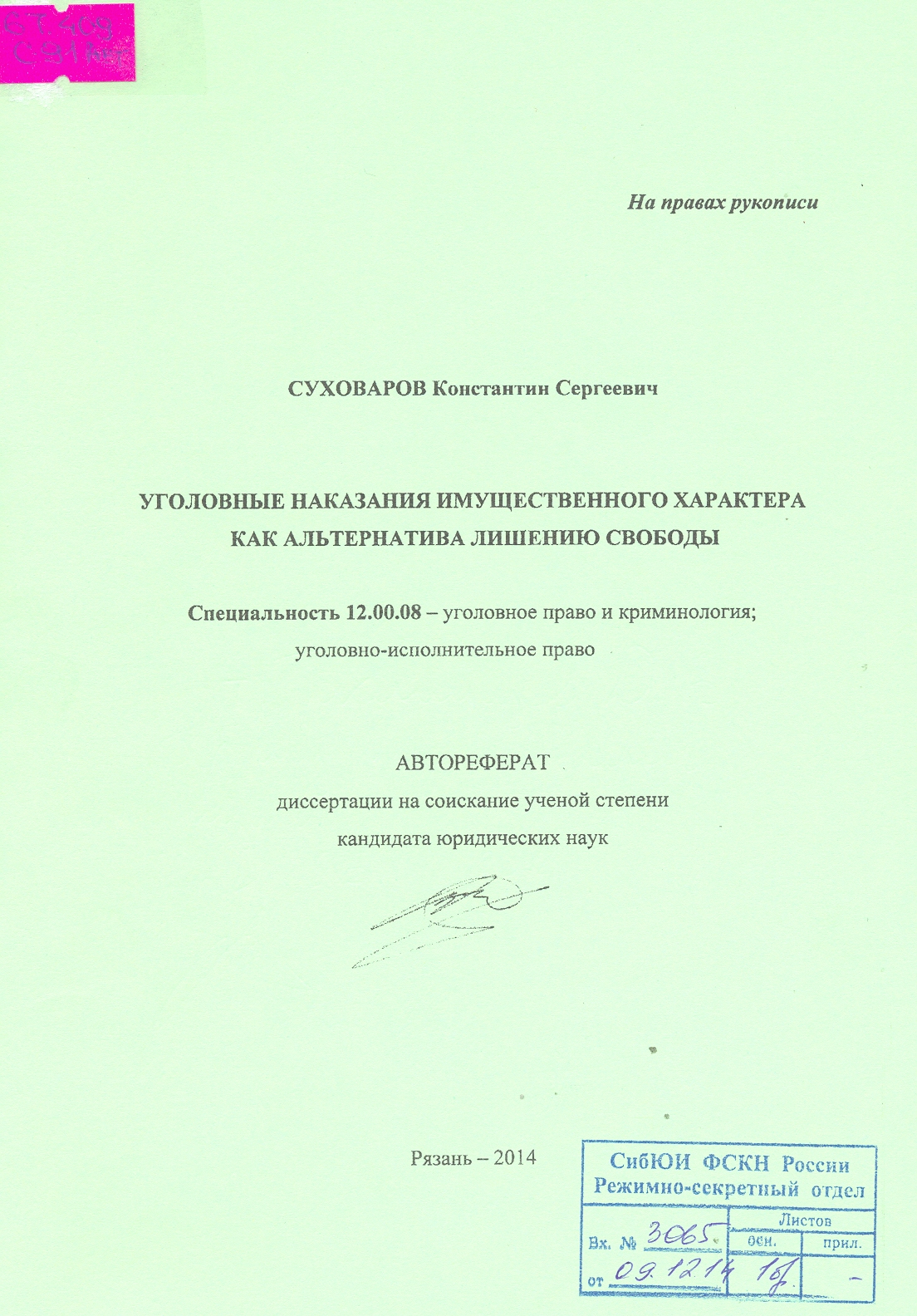 Уголовные наказания имущественного характера как альтернатива лишению свободы: автореферат : 12.00.08