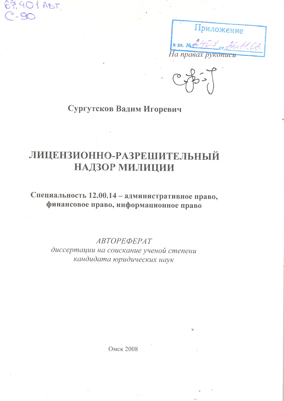Лицензионно-разрешительный надзор милиции: автореферат : 12.00.14