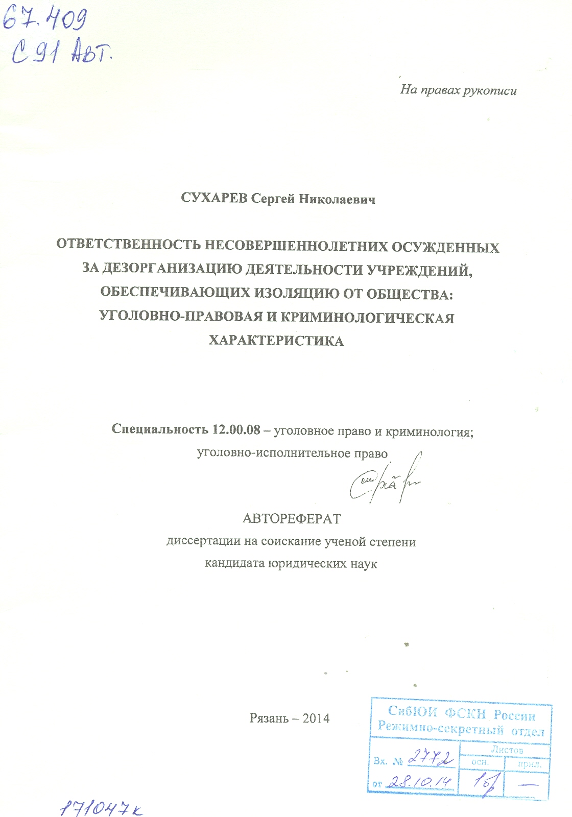 Ответственность несовершеннолетних осужденных за дезорганизацию деятельности учреждений, обеспечи...: автореферат: 12.00.08