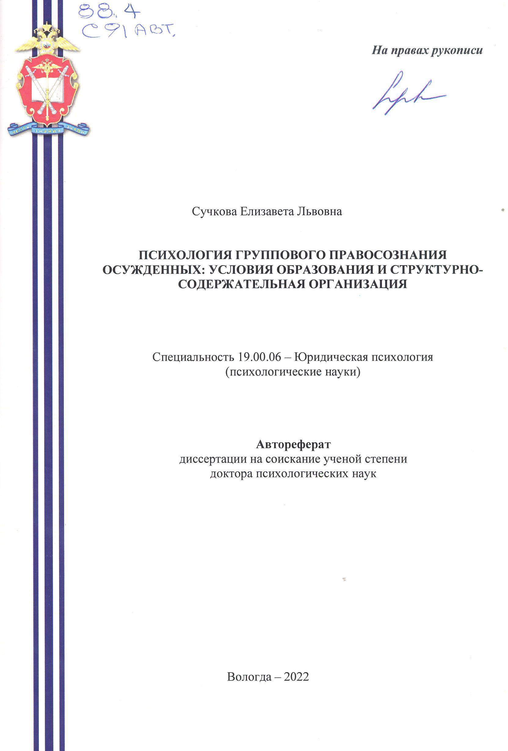 Психология группового правосознания осужденных: условия образования и структурно-содержательная о...: автореферат : 19.00.06