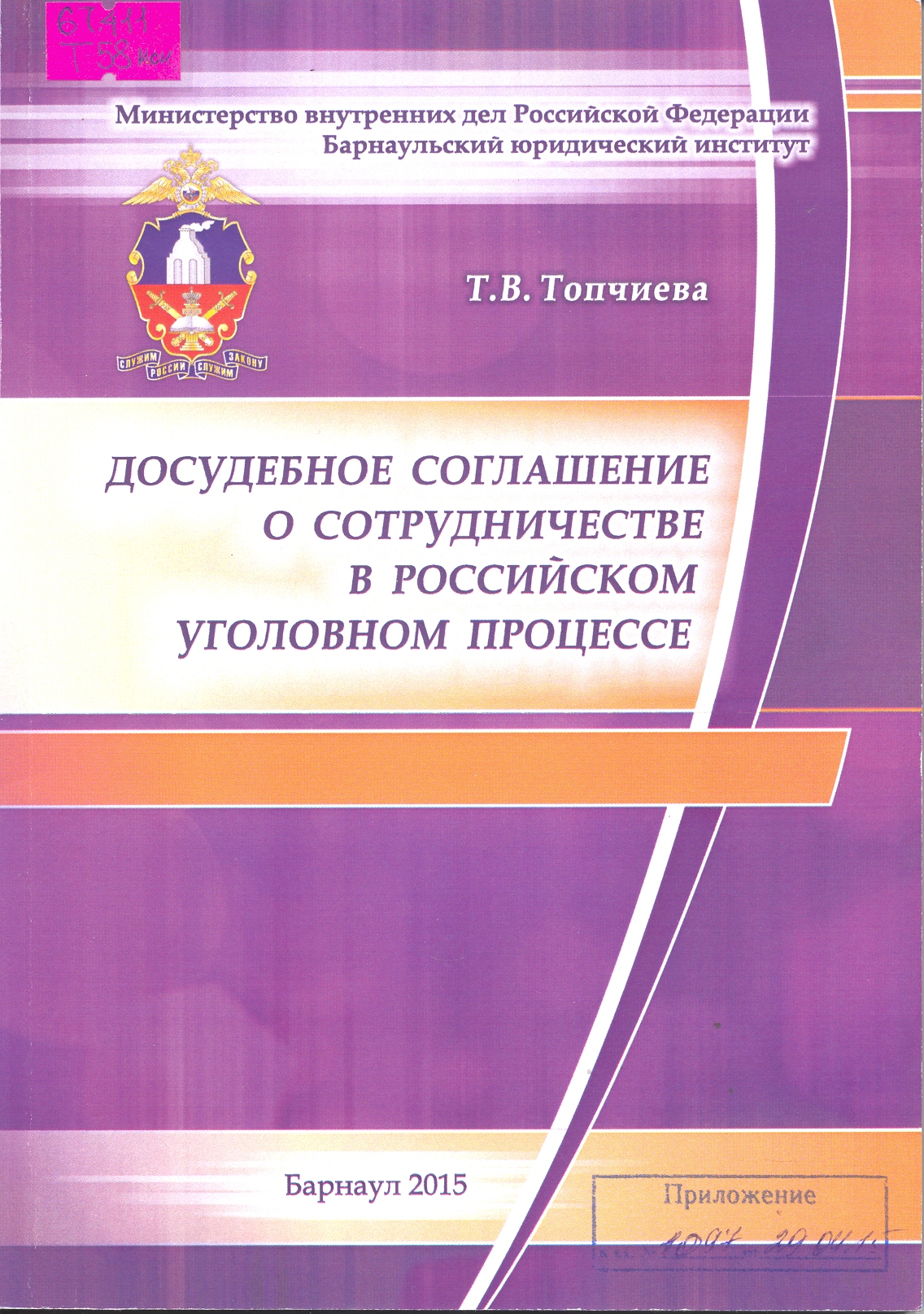 Процессуальный порядок заключения досудебного соглашения о сотрудничестве: учебно-методическое пособие