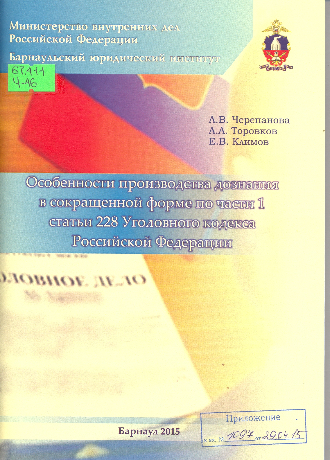 Особенности производства дознания в сокращенной форме по части 1 статьи 228 Уголовного кодекса Ро...: учебно-методическое пособие