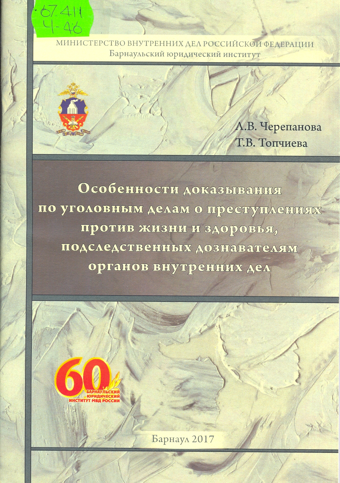 Особенности доказывания по уголовным делам о преступлениях против жизни и здоровья, подследственн...: учебно-практическое пособие