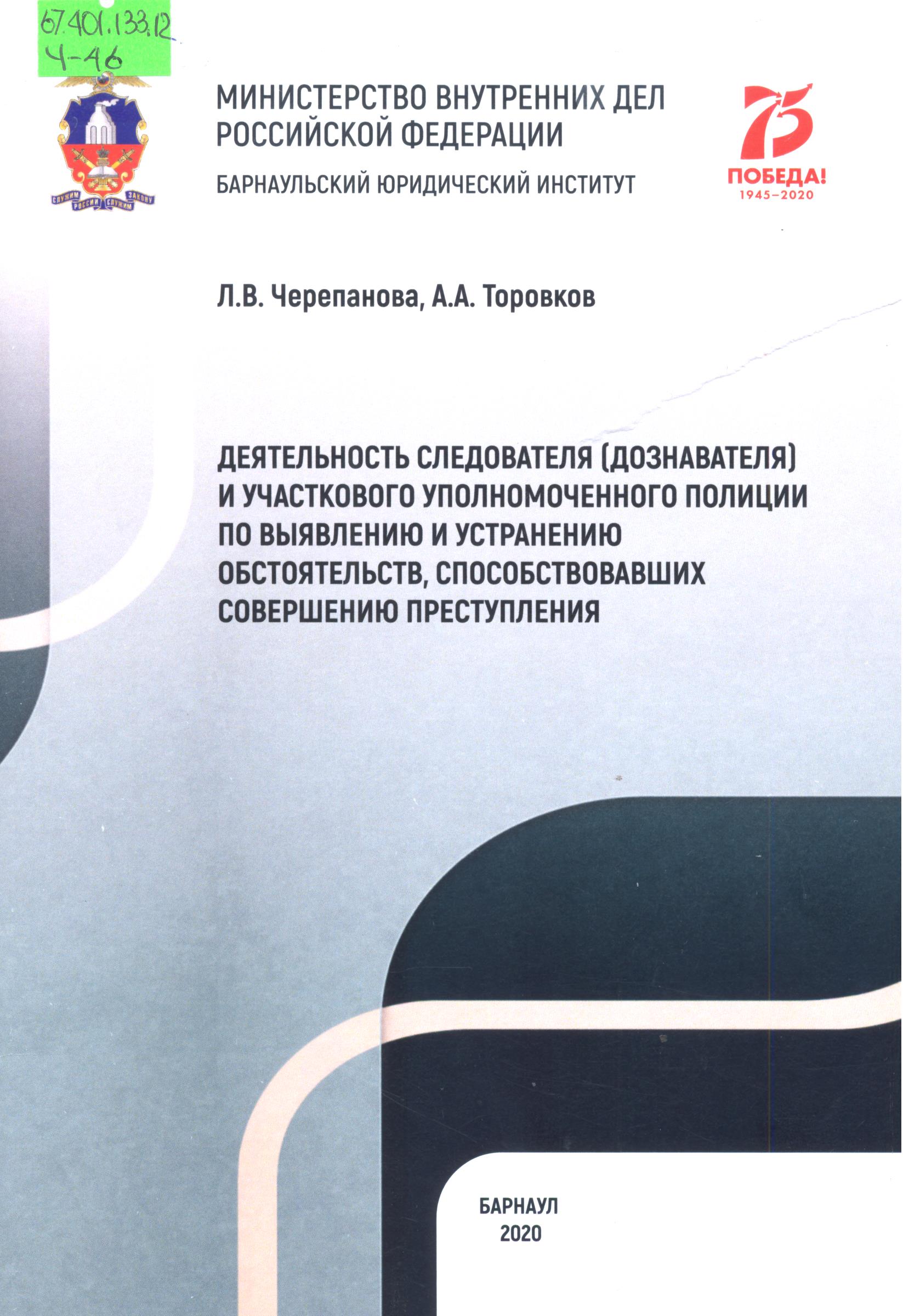 Деятельность следователя (дознавателя) и участкового уполномоченного полиции по выявлению и устра...: учебно-практическое пособие