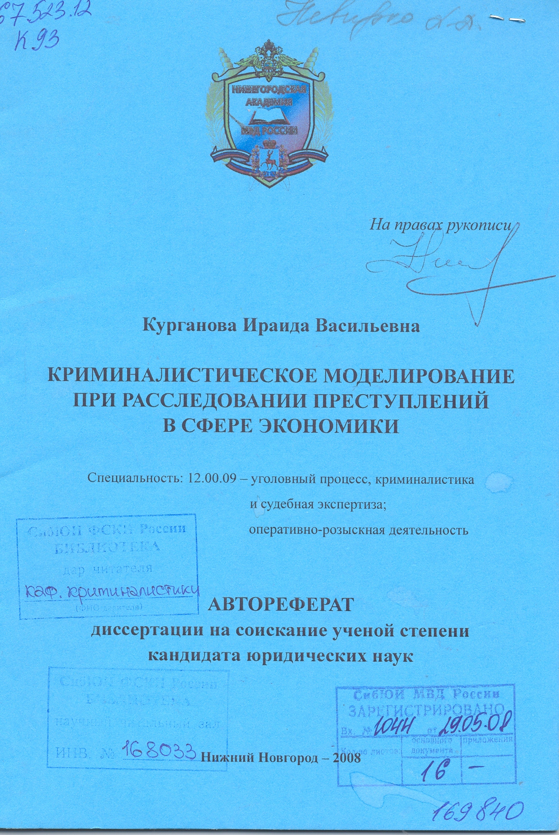 Криминалистическое моделирование при расследовании преступлений в сфере экономики: автореферат: 12.00.09