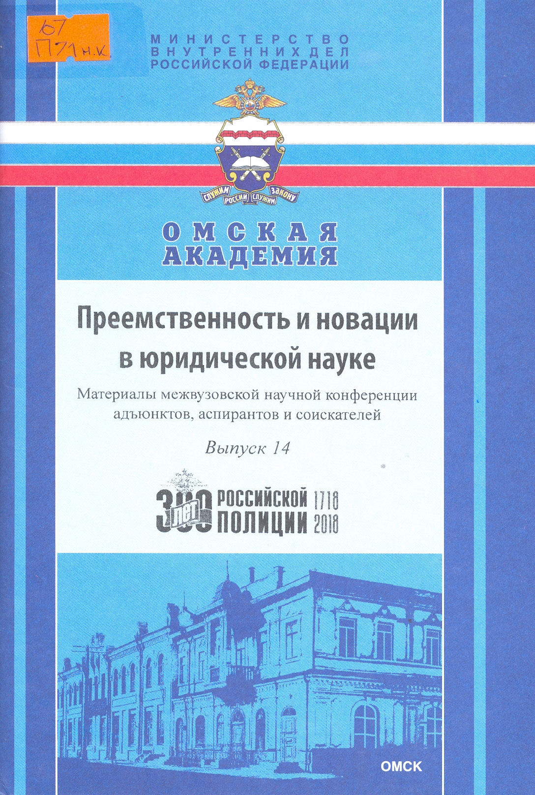 Преемственность и новации в юридической науке: материалы всероссийской научной конференции адъюнктов, аспирантов и соискателей ( 20 марта 2018 г.)
