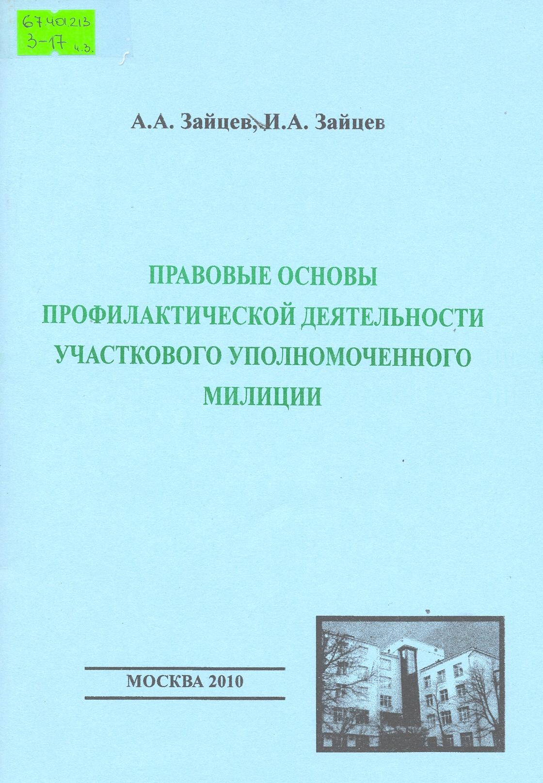Правовые основы профилактической деятельности участкового уполномоченного милиции: учебное пособие