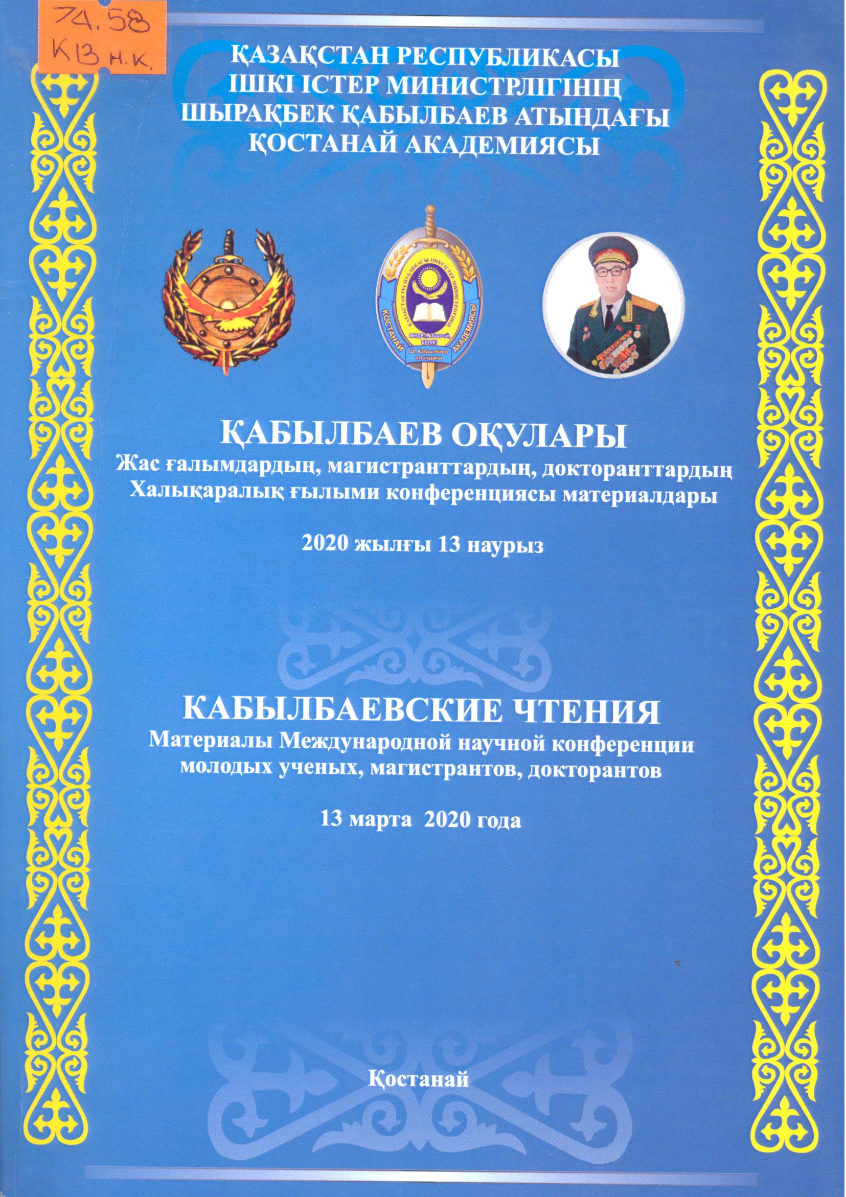 ҚАБЫЛБАЕВ ОҚУЛАРЫ = Кабылбаевские чтения = KABYLBAEV'S READINGS: Қазақстан Республикасы ішкі істер органдарының 30 жылдығына арналған жас ғалымдардың, магистранттар мен докторанттардың Халықа...