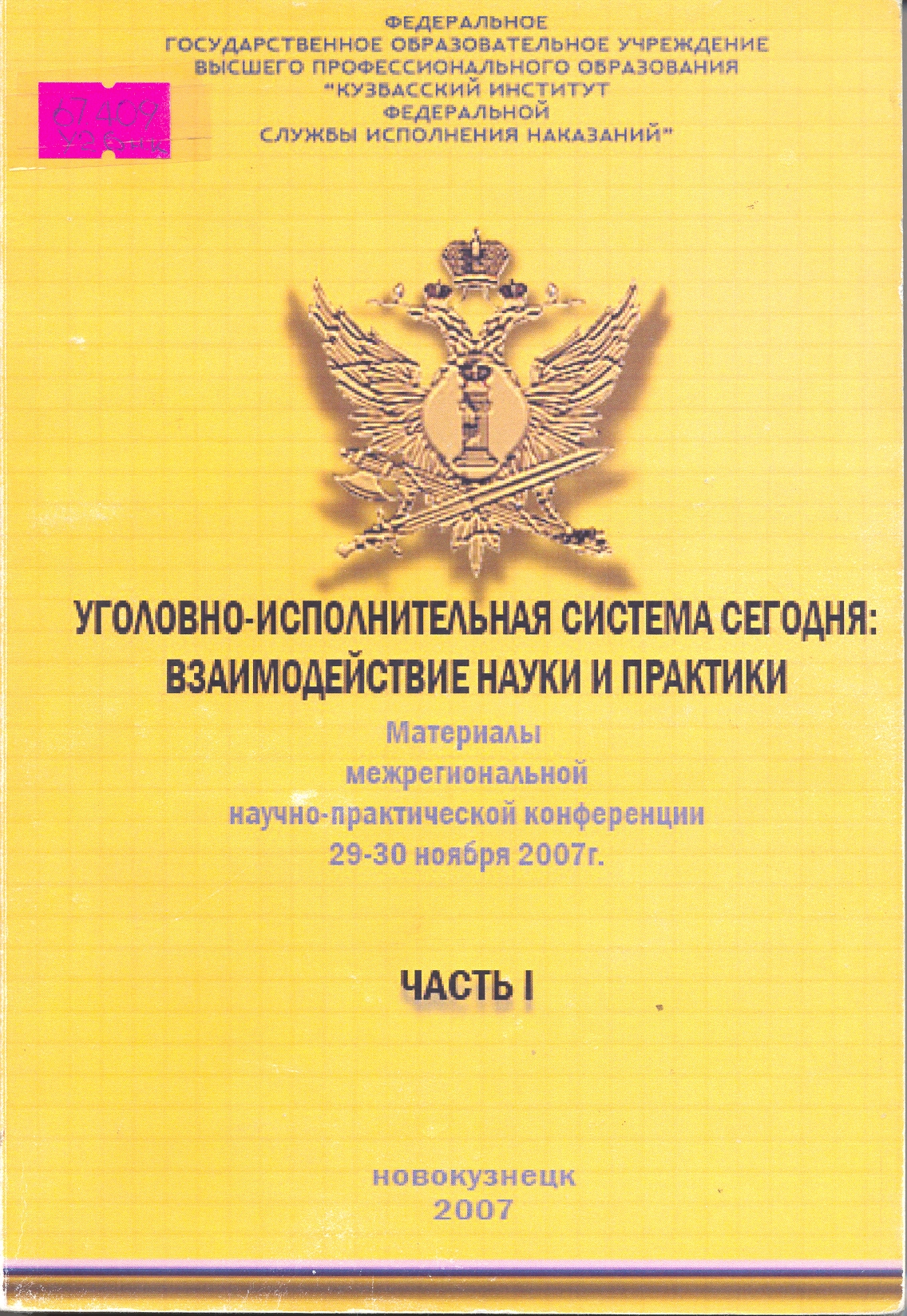 Уголовно-исполнительная система сегодня : взаимодействие науки и практики: материалы региональной научно-практической конференции (29-30 ноября 2007 г.) : в 2 ч. Часть 1