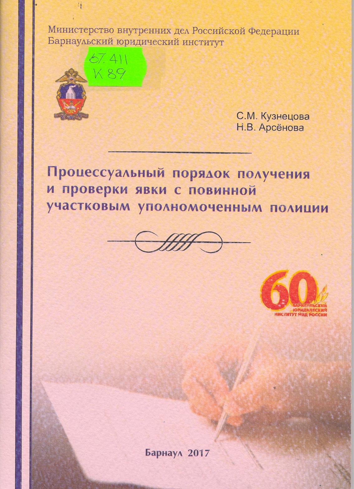 Процессуальный порядок получения и проверки явки с повинной участковым уполномоченным полиции: учебно-практическое пособие