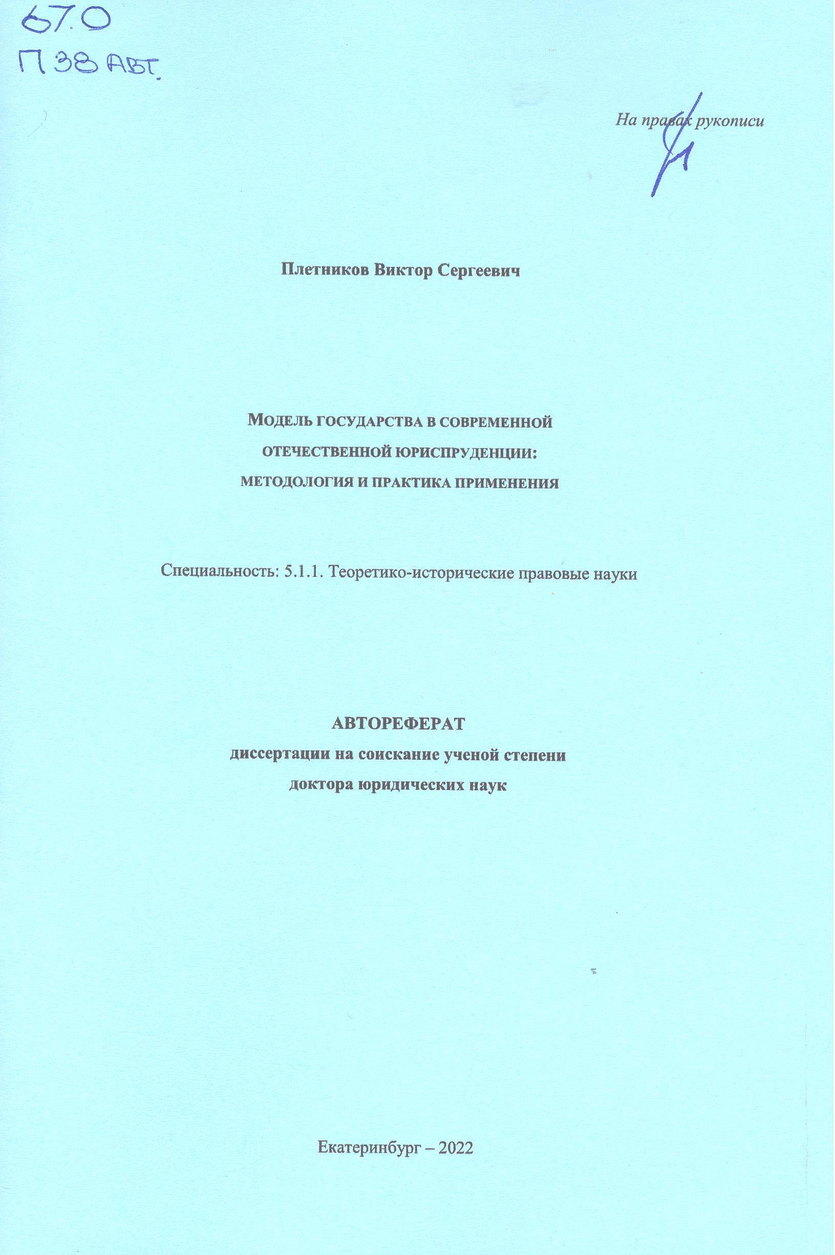 Модель государства в современной отечественной юриспруденции: методология и практика применения: автореферат : 5.1.1