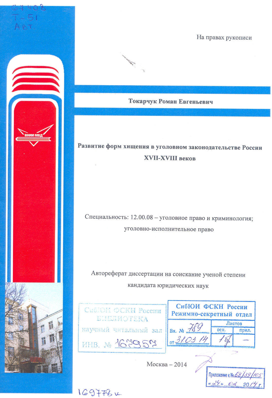 Развитие форм хищения в уголовном законодательстве России XVII-XVIII веков: автореферат: 12.00.08.