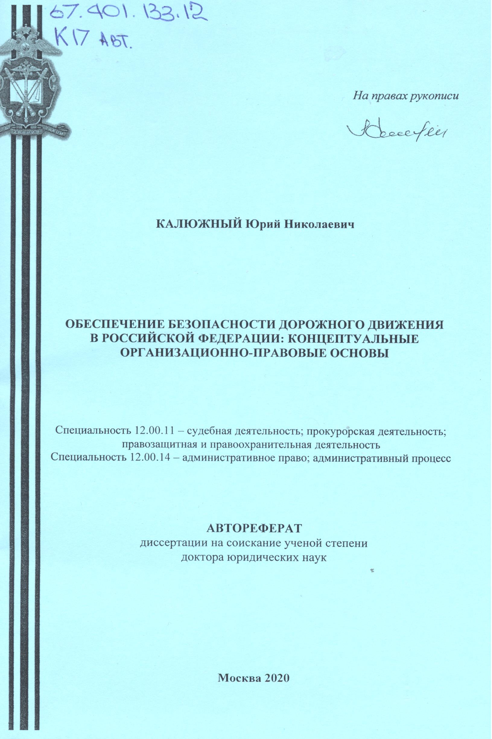 Обеспечение безопасности дорожного движения в Российской Федерации: концептуальные организационно...: автореферат : 12.00.11 ; 12.00.14