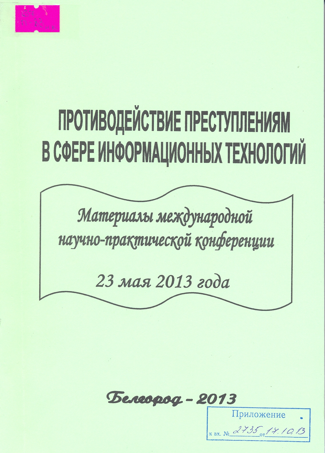 Противодействие преступлениям в сфере информационных технологий: материалы международной научно-практической конференции 23 мая 2013 года